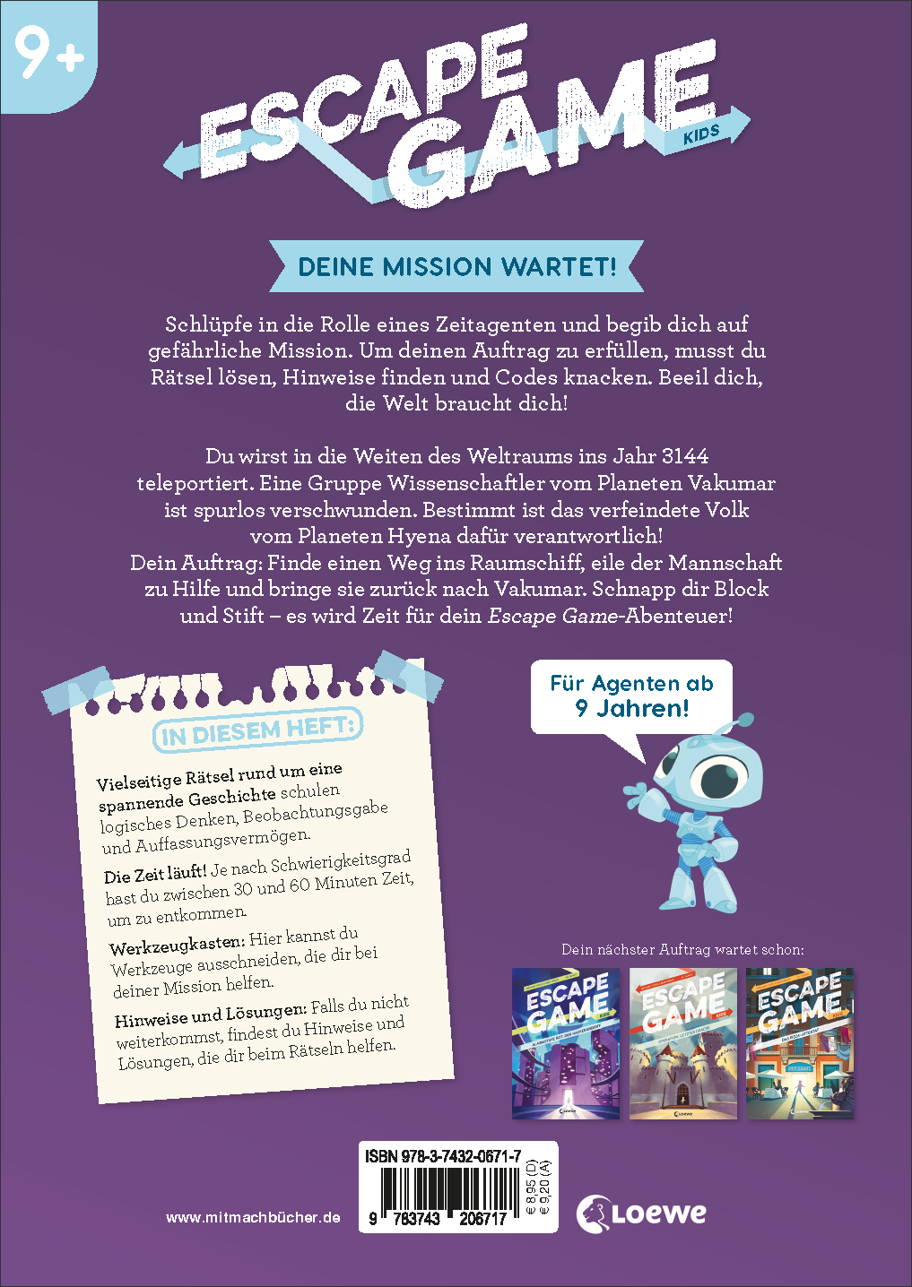 | Schlagworte | Beschäftigungsbuch Mitmachbuch • Bücher wie Escape Game • Bücher wie EXIT - Das Buch • Bücher wie Mission: Exit • Bücher wie X-Scape • Escape Room Buch • Escape Spiel Buch • Geschenk für Kind ab 9 neun Jahre Jahren • Kinderbuch Alien Außerirdiesche UFO • Mitmachbuch Alien UFO Weltall |