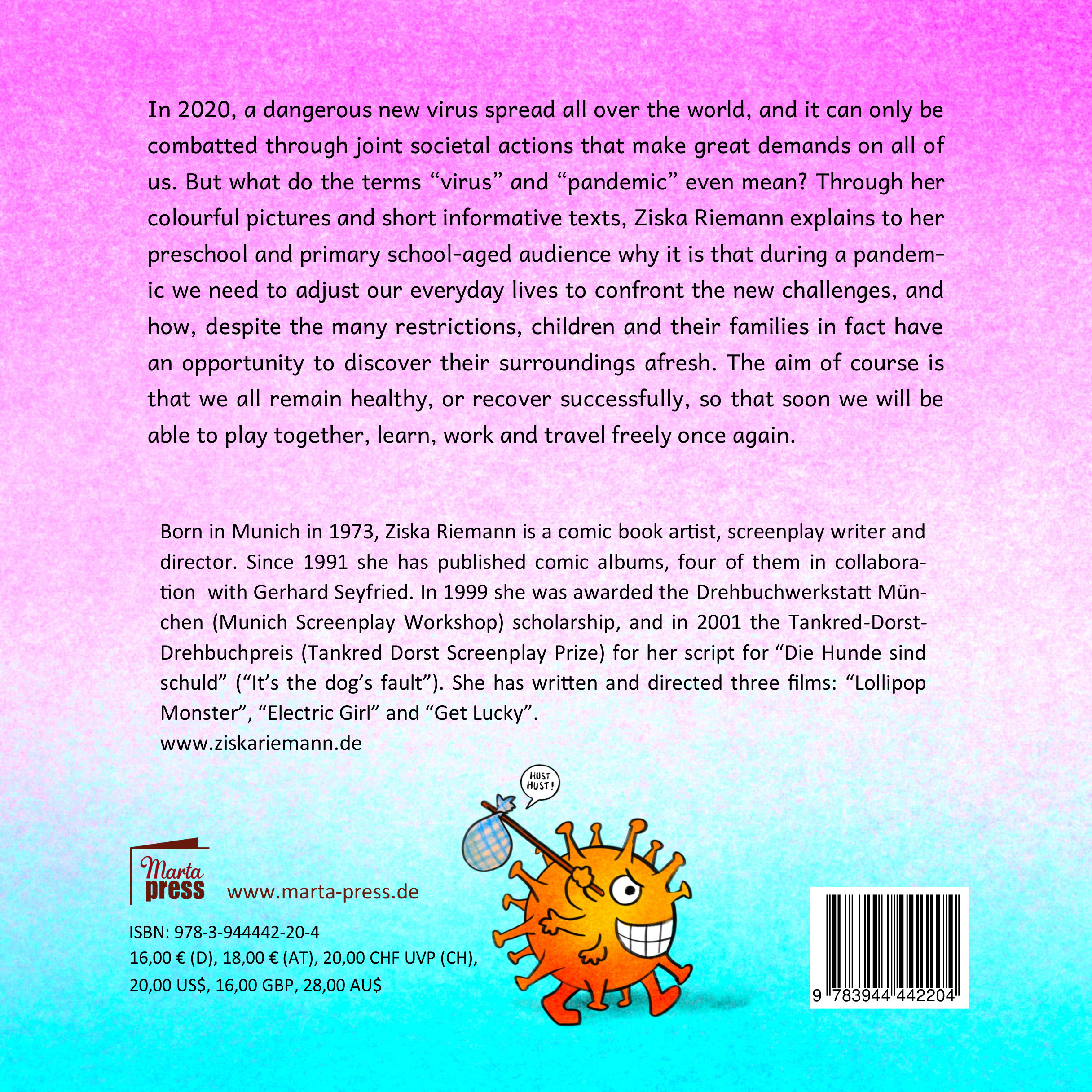 In 2020, a dangerous new virus spread all over the world, and it can only be combatted through joint societal actions that make great demands on all of us. But what do the terms "virus" and "pandemic" even mean? Through her colourful pictures and short informative texts, Ziska Riemann explains to her preschool and primary schoolaged audience why it is that during a pandemic we need to adjust our everyday lives to confront the new challenges, and how, despite the many restrictions, children and their families in fact have an opportunity to discover their surroundings afresh. The aim of course is that we all remain healthy, or recover successfully, so that soon we will be able to play together, learn, work and travel freely once again.