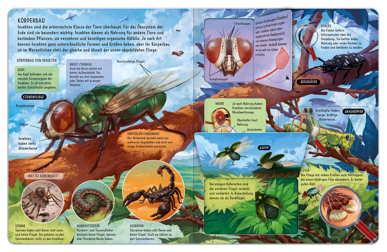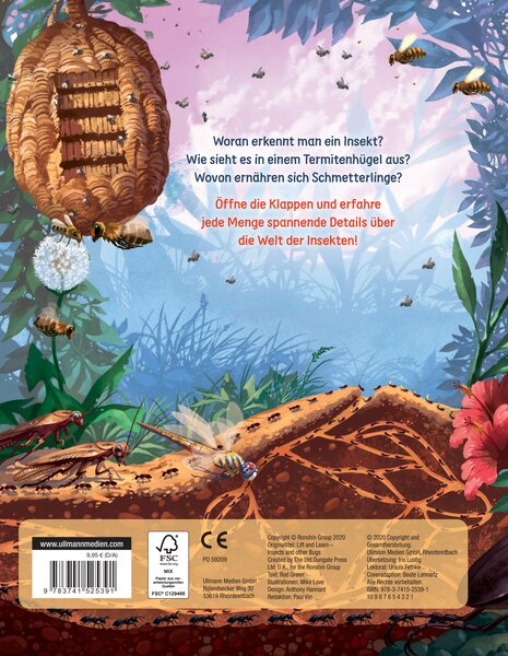 Flieg mit den Schmetterlingen, erkunde die Welt der Bienen und begegne faszinierenden Käfern: Die Welt der Insekten ist ebenso vielfältig wie interessant. Lernen ihre Lebensweise und besonderen Fähigkeiten genauer kennen. Unter den über 75 Klappen verbergen sich spannende Sachinformationen.