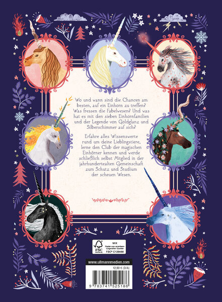 Wo und wann sind die Chancen am besten, auf ein Einhorn zu treffen? Was fressen die Fabelwesen? Und was hat es mit der Legende vom Goldglanz und Silberschimmer und den sieben Einhorn-Familien auf sich? Dieses wunderschön illustrierte Handbuch ist eine wahre Fundgrube für alle, die an die magischen Kreaturen glauben. Außerdem erfahren große und kleine Einhorn-Fans mehr über die Geschichte des geheimnisumwitternden Clubs und wie sie selbst Mitglied in der jahrhundertealten Gemeinschaft zum Schutz und Studium der scheuen Tiere werden können.
