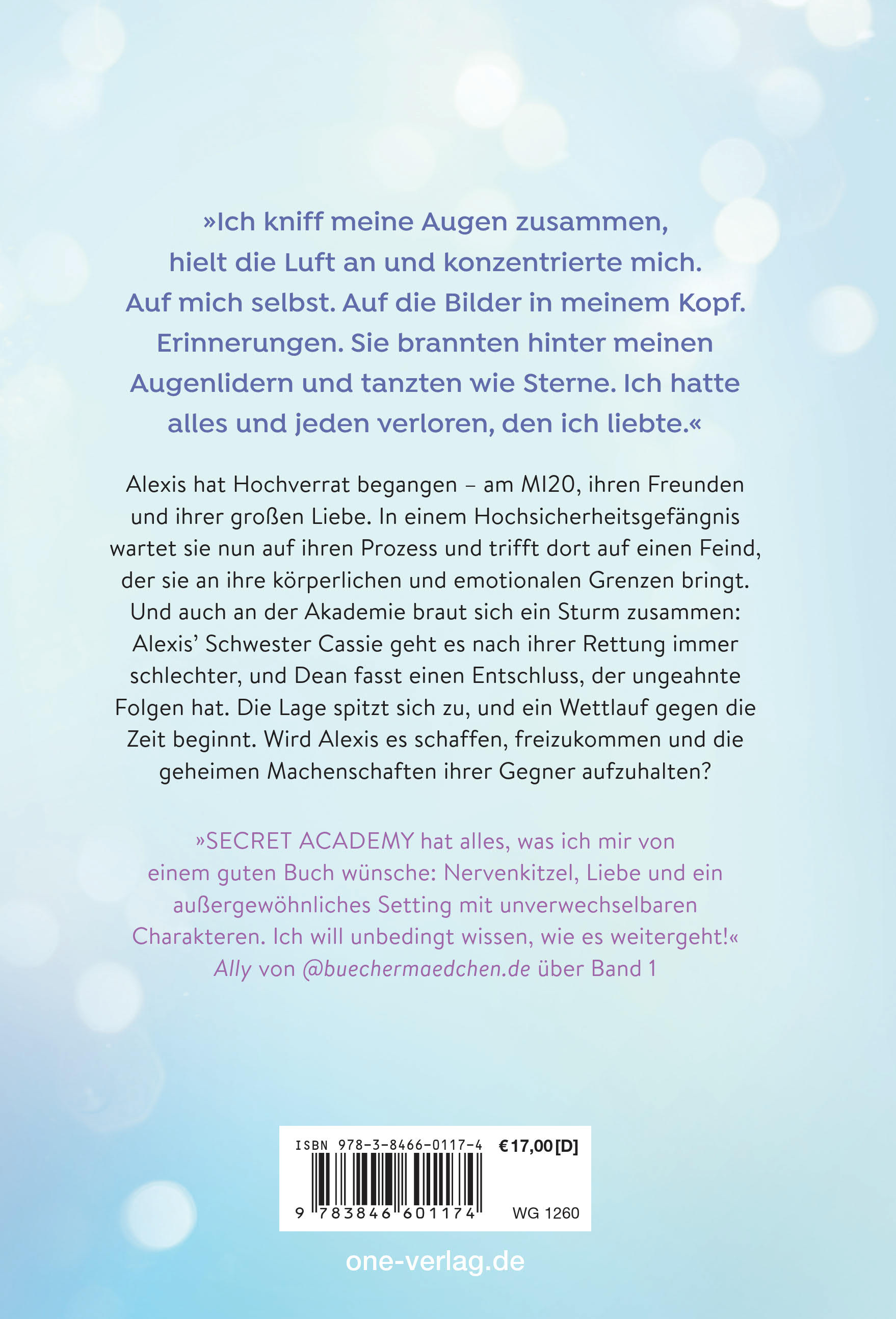 Alexis hat Hochverrat begangen - am MI20, ihren Freunden und ihrer großen Liebe. In einem Hochsicherheitsgefängnis wartet sie nun auf ihren Prozess und geht dabei an ihre körperlichen und emotionalen Grenzen. Hinter Gittern trifft sie auf alte Bekannte, die ihr das Leben zur Hölle machen. Und auch an der Akademie spitzt sich die Lage zu: Cassie geht es immer schlechter, und Dean fasst einen Entschluss, der ungeahnte Folgen hat. Die Situation scheint aussichtslos, und ein Wettlauf gegen die Zeit beginnt. Kann Alexis ihre Fehler wiedergutmachen?