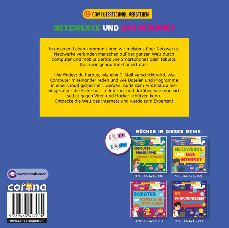 Computer sind überall, denn sogar ein Smartphone ist ein kleiner Computer. Aber was steuert alle Teile eines Computers, so wie das Gehirn den Körper? Welche Sprache sprechen Computer und wie werden sie miteinander verbunden? Was haben Programmiercode und Rezepte gemeinsam? Und wie passt man im Internet gut auf sich auf? In der Reihe "Computertechnik verstehen" finden Kinder ab 7 Jahren altersgerechte Antworten und lernen, wie moderne digitale Geräte und Technologien funktionieren.