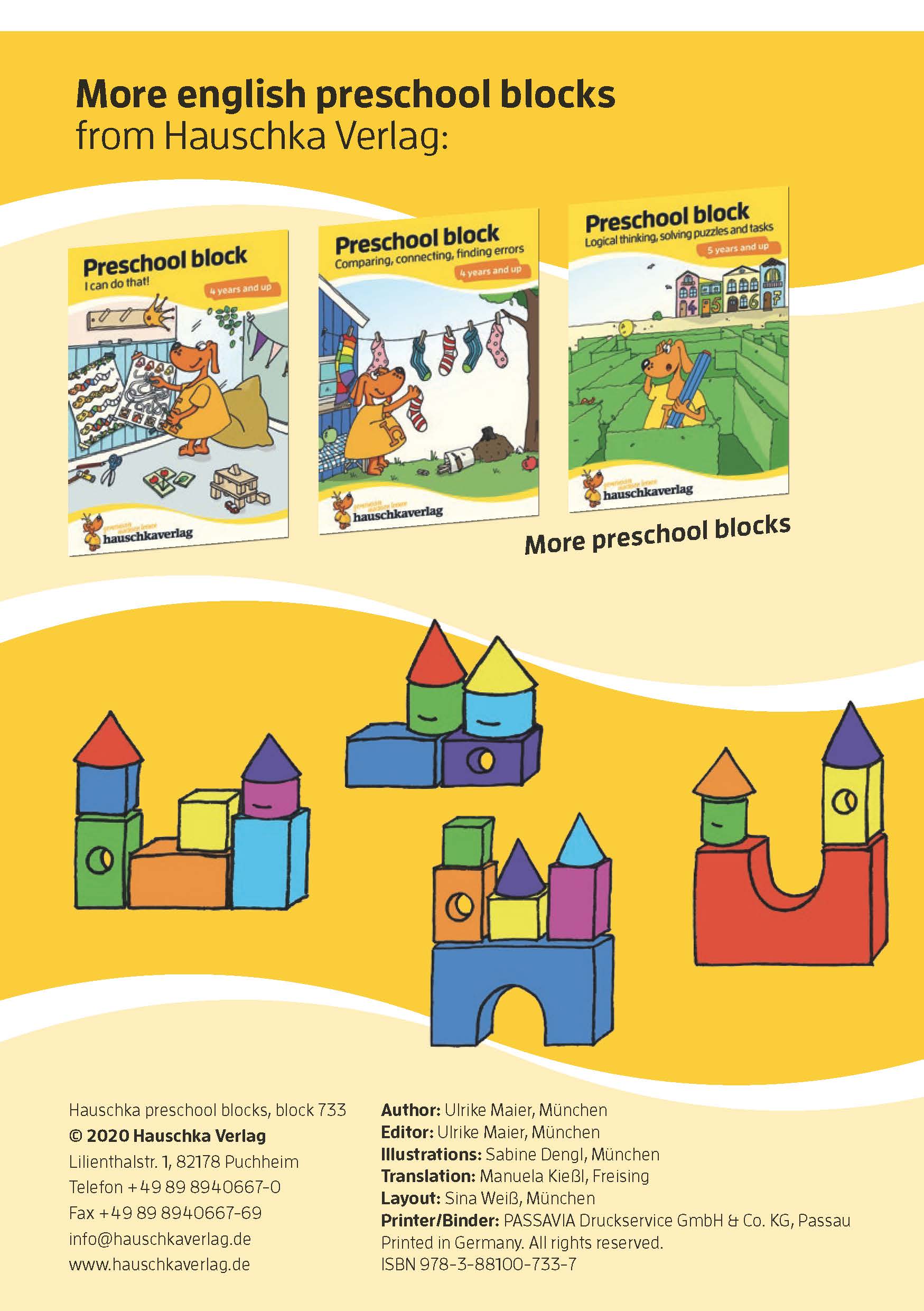 Pre-school children are eager to show what they can do on their own proudly. As always with Hauschka Publishers, this pre school activity book was co-developed by educators and put to the test by kids. The result is child-friendly tasks that encourage girls and boys in a playful way right from the start and prepare them specifically for school - for more moments of learning achievements.