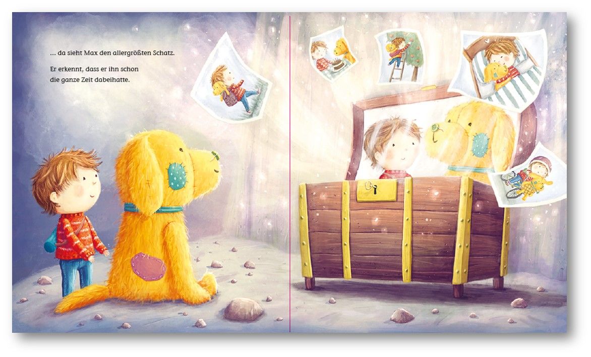 So beginnt ein magisches Abenteuer für Max und seinen Kuschelhund Toffie. Zusammen machen sich die beiden auf die Suche nach dem Goldenen Schatz. Sie setzen sich gegen einen schwer bewaffneten Ritter durch, gewinnen ein Rennen gegen den schnellsten Rennfahrer und beweisen dem hochnäsigen Einhorn, dass sie auch ohne Flügel ihr Ziel erreichen können. Doch als sie den Schatz endlich finden, erkennt Max, dass er ihn schon die ganze Zeit dabei hatte!