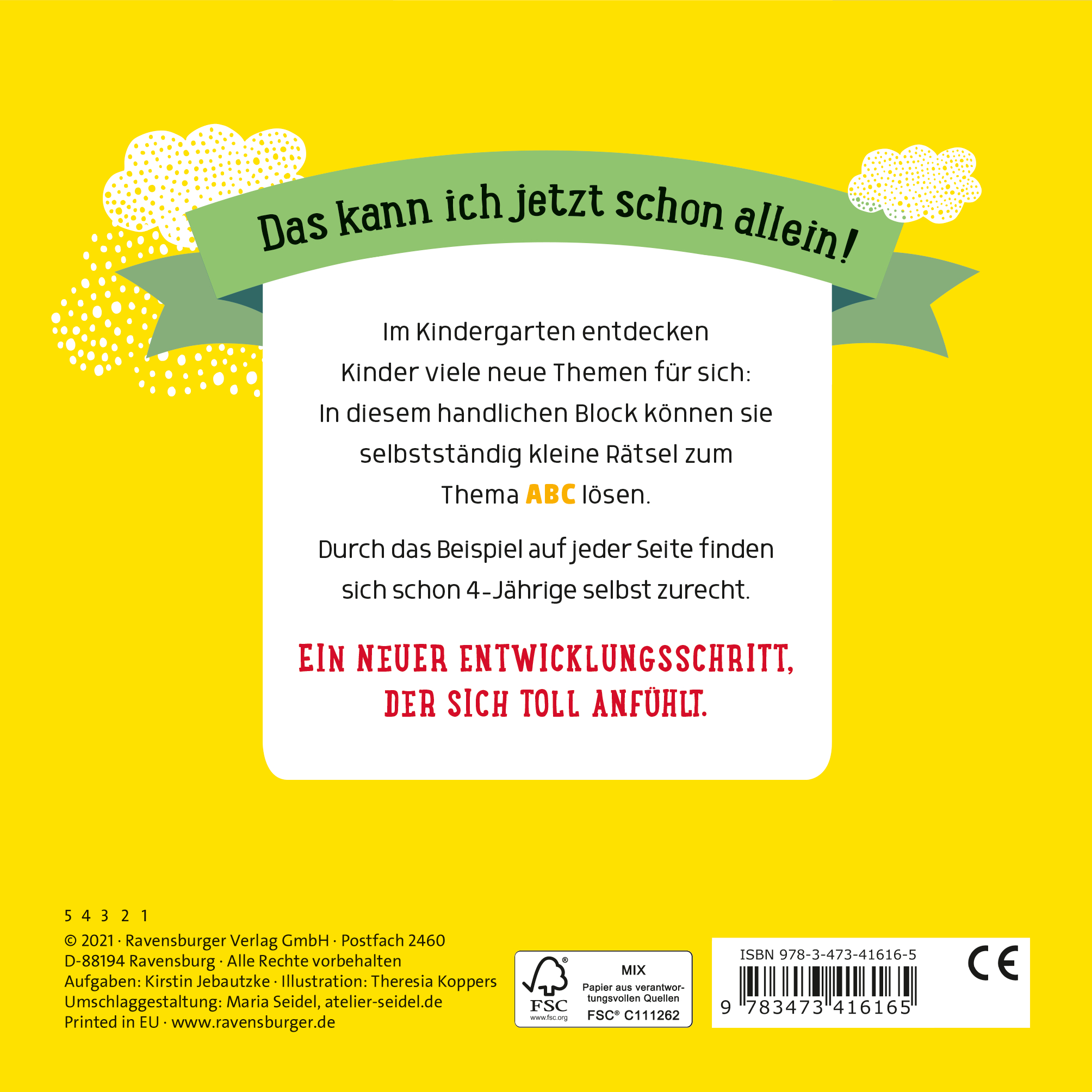 Dieser kleine handliche Block ist jeweils mit schriftfreien Anleitungen versehen, sodass Kindergartenkinder die Aufgaben problemlos allein lösen können. Außerdem besteht die Möglichkeit einzelne Blätter des Blocks abzureißen. Die bearbeiteten Blätter können danach zum Basteln weiterverwendet werden. Hier wird Kindern auf spielerische Weise das Alphabet nähergebracht und nebenbei wird die Konzentrationsfähigkeit und Feinmotorik geschult. Der ideale Begleiter für Zuhause und unterwegs!