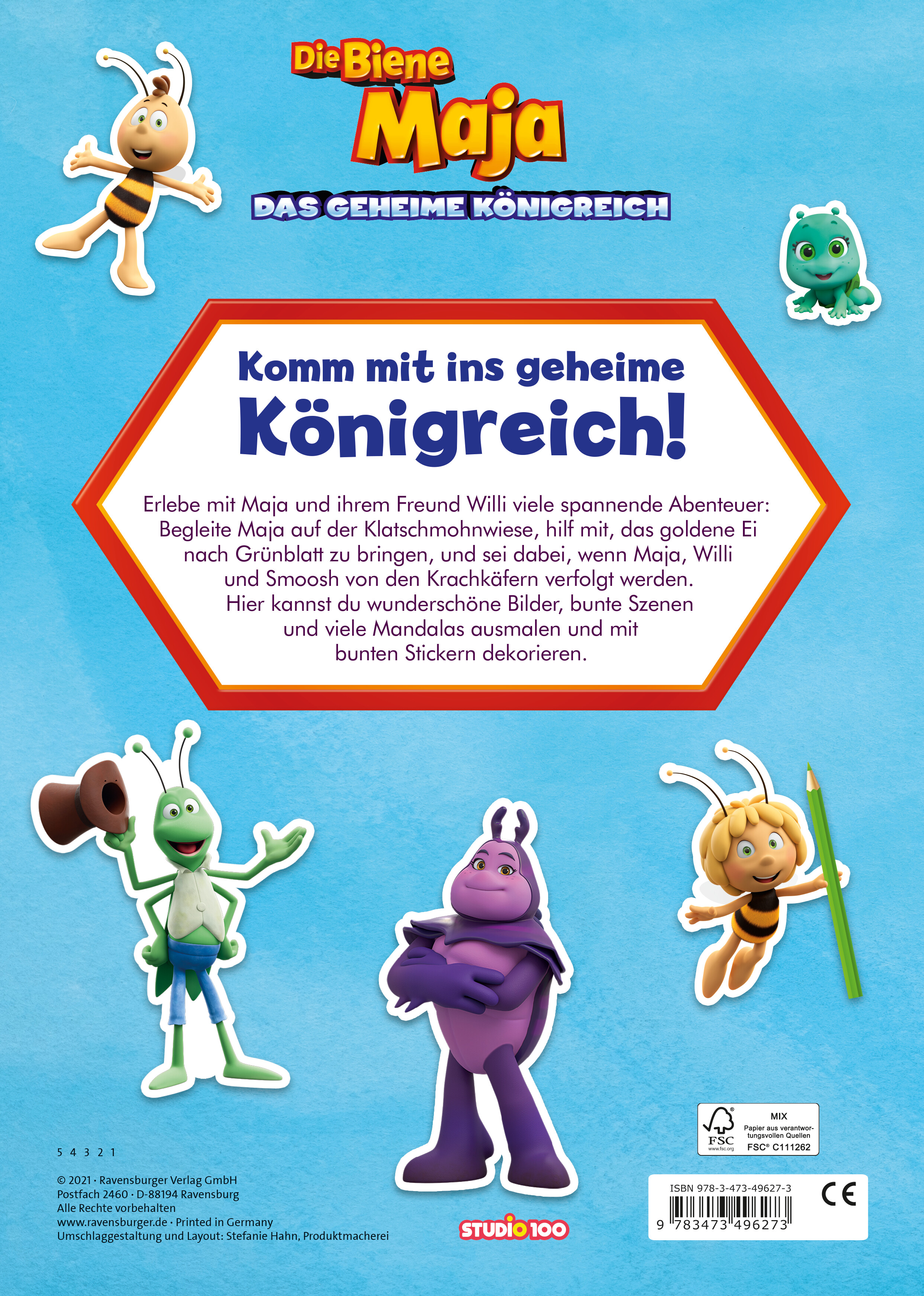 Die farbigen Hintergründe erwecken deine Freunde aus dem Fernsehen zum Leben: Sie fliegen durch Bienenwaben, über Blumenwiesen und erleben viele Abenteuer. Schnapp dir deine Stifte und los geht`s!