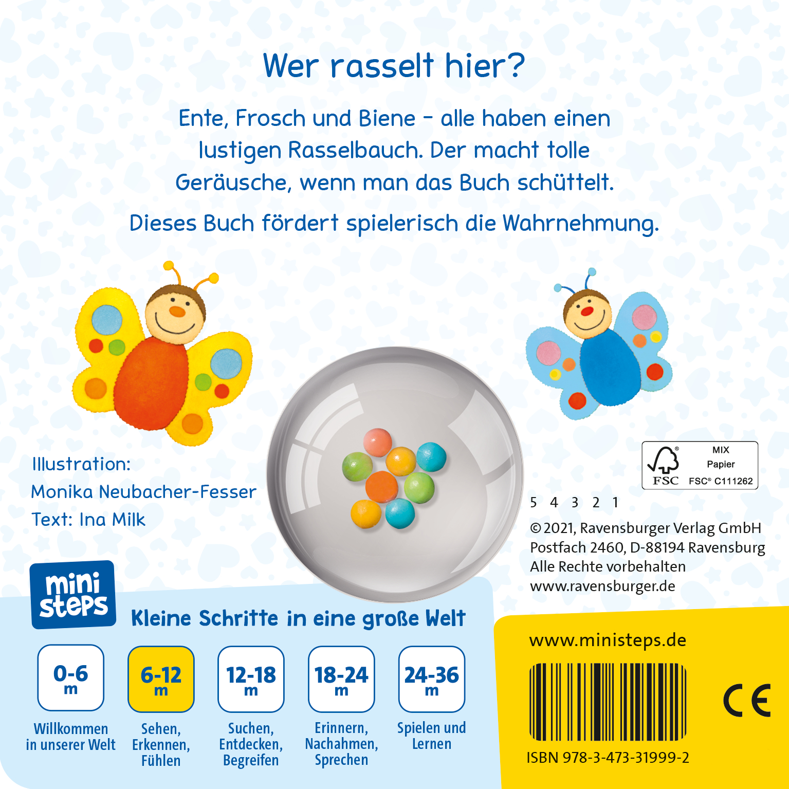 Was rasselt denn hier? Ente, Frosch und viele andere Tiere haben eine kunterbunte Rasselkugel in ihrer Mitte. Schon die Kleinsten können dieses handliche und stabile Buch gut greifen und schütteln und damit selbst das lustige Rasselgeräusch auslösen. Kurze Reime begleiten die Bilder und laden Kleinkinder zum genauen Betrachten und Entdecken ein. Welches wohl das Lieblingstier wird?