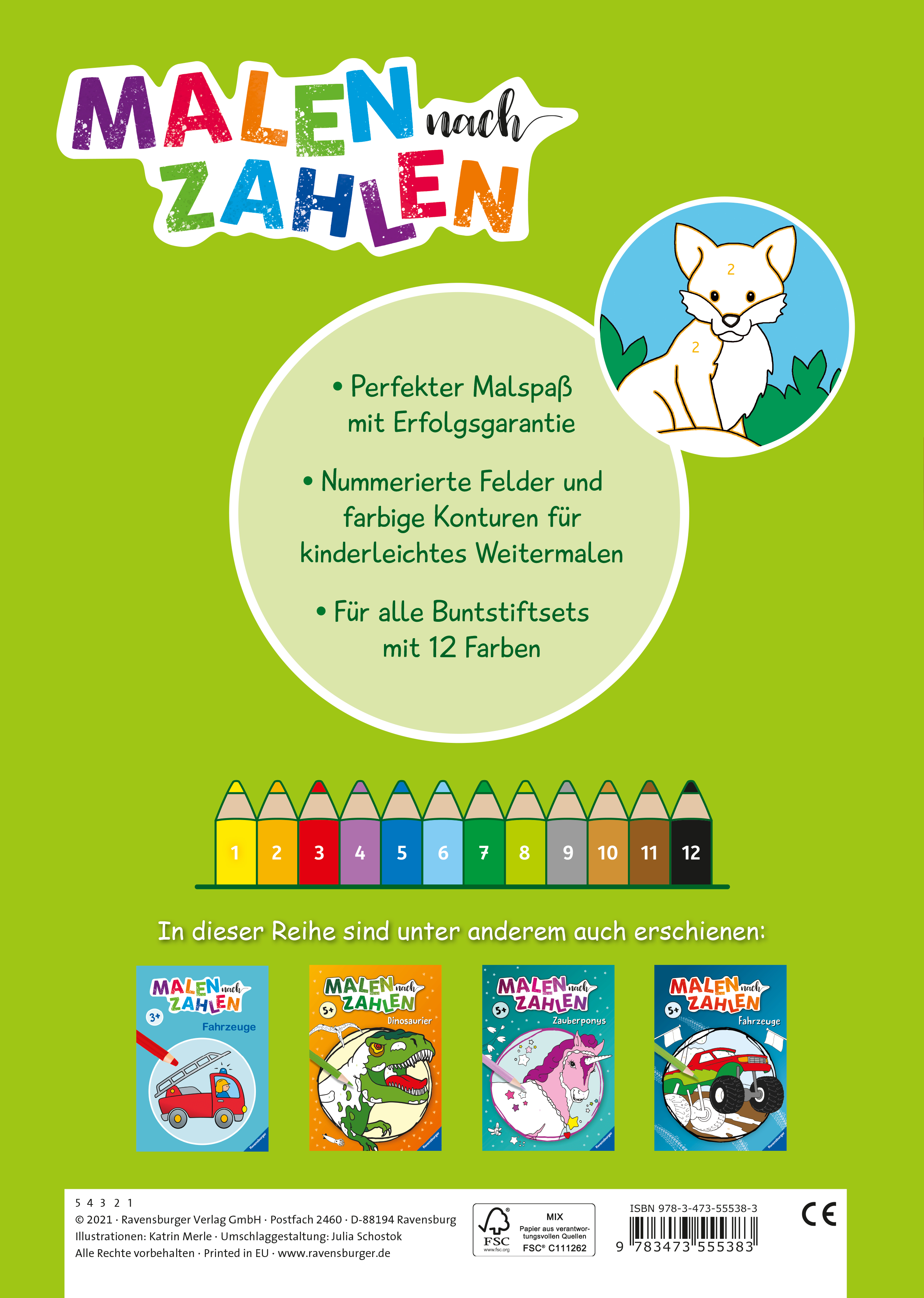 Malen wie die Profis - das ist mit der Ravensburger Erfolgsreihe "Malen nach Zahlen" kinderleicht: Alle Ausmalfelder enthalten Zahlen, die die Farben vorgeben. Die Ziffern sind gut lesbar, aber so zart, dass sie beim Übermalen verschwinden. Feld für Feld entstehen bunte, detailreiche Bilder. Und auch anspruchsvolle Motive wie Pferde oder Dinosaurier werden erfolgreich gemeistert. Die Reihe führt Mal-Angebote für vier Altersstufen (ab 3, ab 5, ab 7 und von 9-99 Jahren) sowie motivierende Lern-Blöcke für Kinder von 5 - 8 Jahren. Für die Kleinen ab 3 Jahren haben die Malflächen farbige Zahlen und farbige Rahmenlinien. Die Titel ab 5 Jahren erleichtern das Malen allein über die Farbe der Zahlen. Hefte für Kinder ab 7 fordern bewusst die Feinmotorik. Und wer schon über 9 Jahre alt ist und Malen- nach- Zahlen- Fan, der findet hier extradicke Titel voller Malvorlagen, die kein Alter kennen.