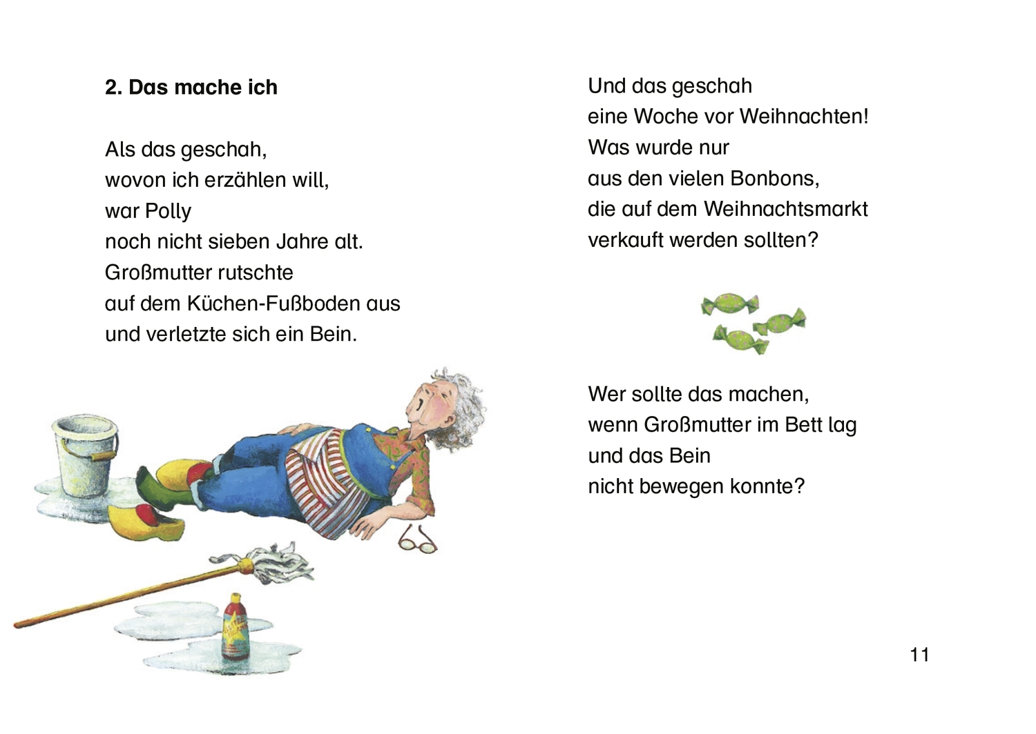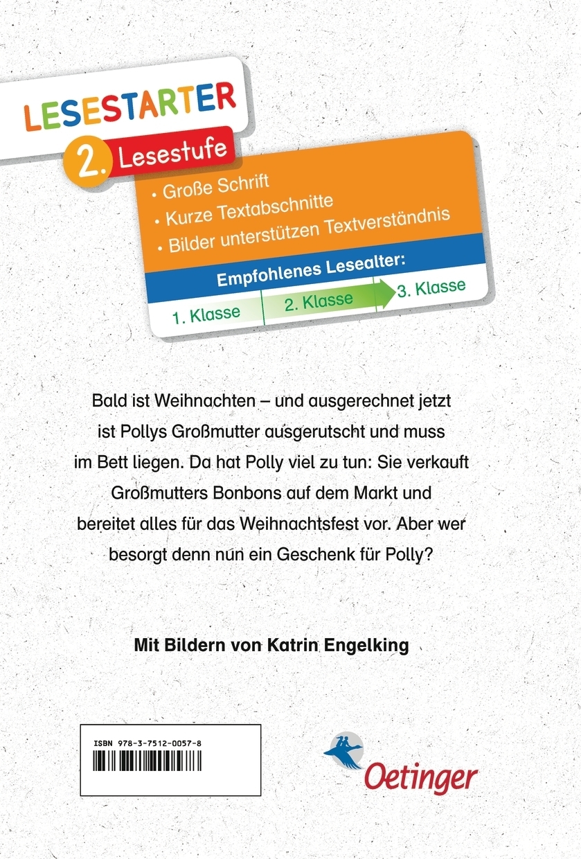 Bald ist Weihnachten - und Polly hat so viel zu tun! Denn ausgerechnet jetzt ist ihre Großmutter ausgerutscht und muss im Bett liegen. Also backt Polly selbst den Weihnachtskuchen, verkauft Großmutters Bonbons auf dem Markt und bereitet alles für das Weihnachtsfest vor. Aber ob sie sich auch selbst ein Weihnachtsgeschenk besorgen kann? Die Lesestarter von Oetinger motivieren auch leseschwache Kinder zum Lesen. Wie? Mit bekannten Autoren, starken Charakteren und populären Themen, die Kinder im Alter von fünf bis zehn Jahren begeistern. Mit vielen Bildern. Ein Weihnachtsklassiker von Astrid Lindgren, für alle Fans von Pippi Langstrumpf und den Kindern aus Büllerbü.