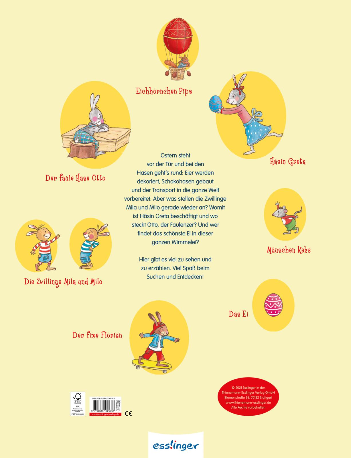 Hinstellen, aufklappen und in die bunte Hasen-Welt hineinsetzen, hier lassen sich viele lustige Wimmelgeschichten entdecken: Kurz vor Ostern geht es bei den Hasen rund. Eier werden bemalt, Schokohasen gebaut und der Transport in die ganze Welt vorbereitet. Aber was stellen die Hasen-Zwillinge dabei an, wo steckt der Faulenzer Otto und wer findet das schönste Ei in dieser ganzen Wimmelei? Viel Spaß beim Suchen und Entdecken!