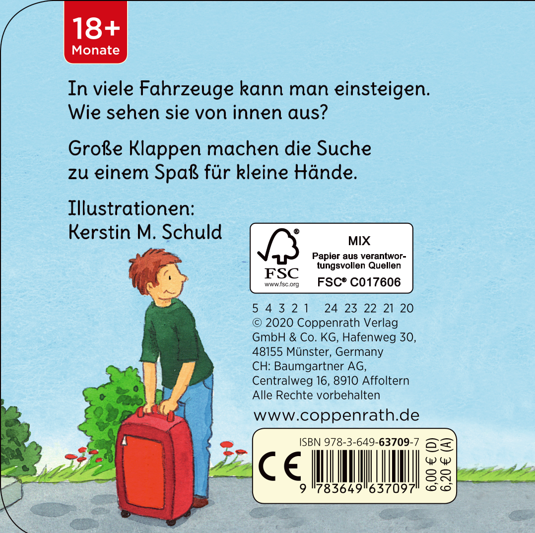 In viele Fahrzeuge kann man einsteigen. Wie sehen sie von innen aus? Große Klappen machen die Suche zu einem Spaß für kleine Hände.
