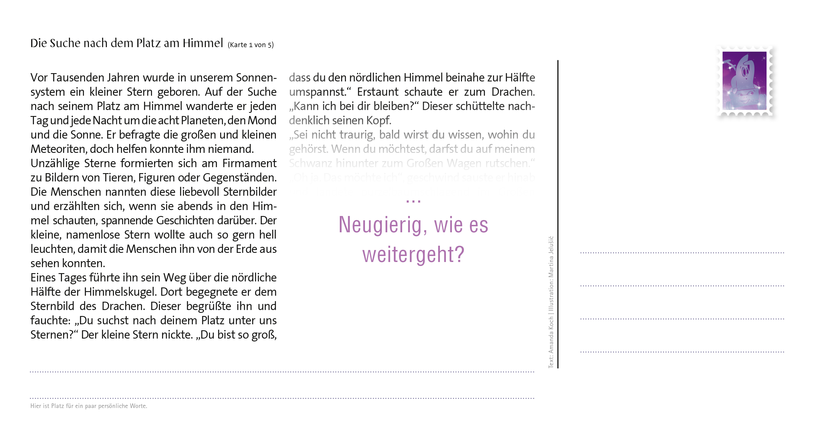 | Schlagworte | Abenteuer • Kurzgeschichte • Natur • Postkarte • Reise • Stern |