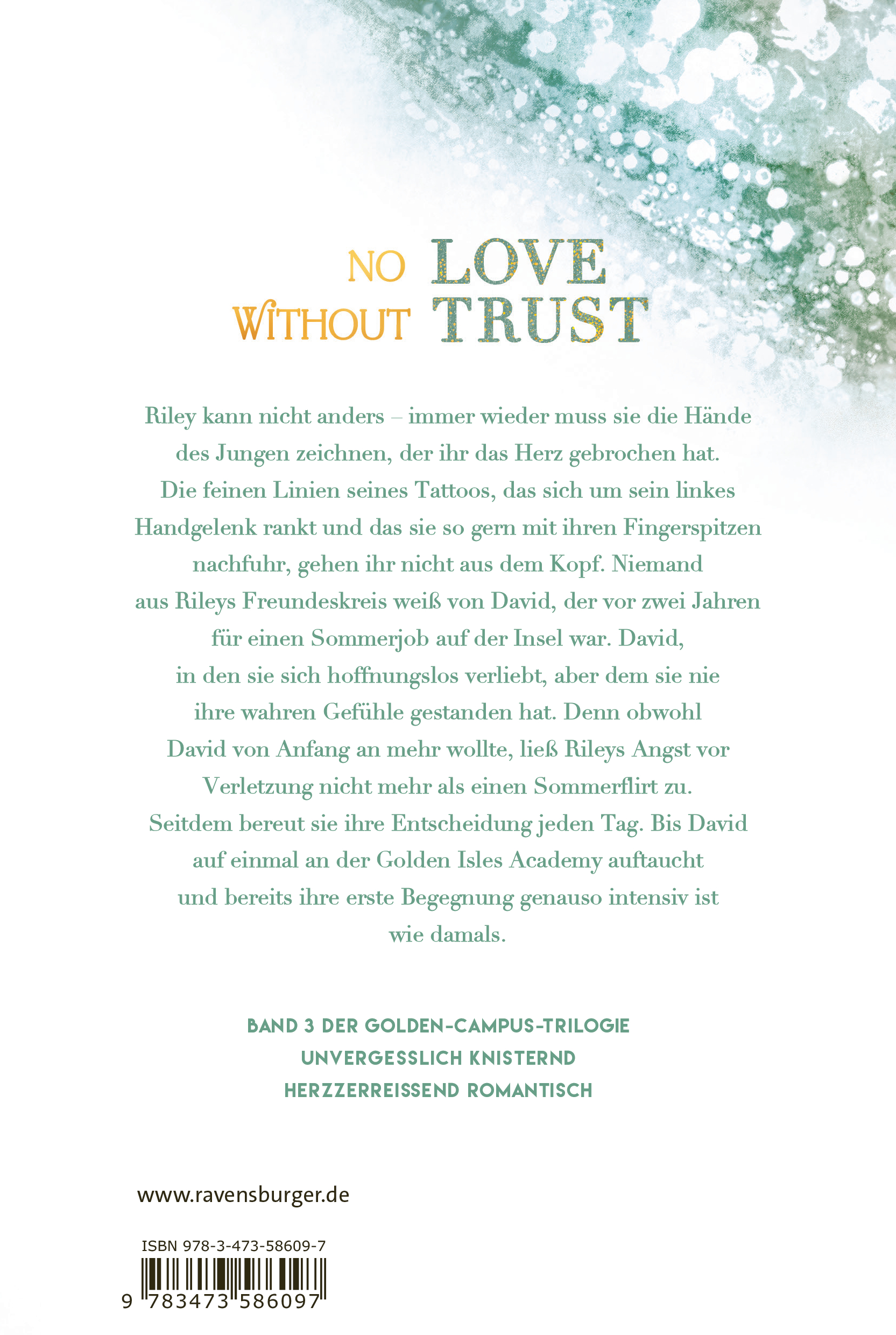 Riley kann nicht anders – immer wieder zeichnet sie das Tattoo des Jungen, der ihr das Herz gebrochen hat. Niemand aus Rileys Freundeskreis weiß von David, der den Sommer vor zwei Jahren auf der Insel verbrachte. David, in den sie sich hoffnungslos verliebt, aber dem sie nie ihre Gefühle gestanden hat. Denn obwohl er von Anfang an mehr wollte, ließ Rileys Angst nicht mehr als einen Sommerflirt zu. Seitdem bereut sie ihre Entscheidung jeden Tag. Bis David an der Golden Isles Academy auftaucht.