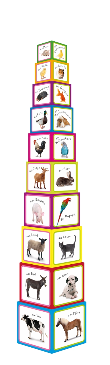Würfel für Würfel zum kunterbunten Stapelturm - ein lustiger Spielspaß für Kleinkinder ab einem Jahr! 10 stabile Karton-Würfel mit wunderschönen, klaren Tierfotos werden von den kleinen Kinderhänden zu einem 90 cm hohen Turm aufgebaut. Dabei wird spielerisch die Welt der Tiere entdeckt: Ob Haustiere, Bauernhoftiere, heimische Wildtiere oder Tiere im Zoo. Durch das Stapeln, Entdecken und Benennen wird sowohl der Spracherwerb als auch die Augen-Hand-Koordination optimal gefördert. Die realistischen Tierfotos unterstützen die Kinder beim klaren Erkennen der Tiere und Lernen der Wörter.