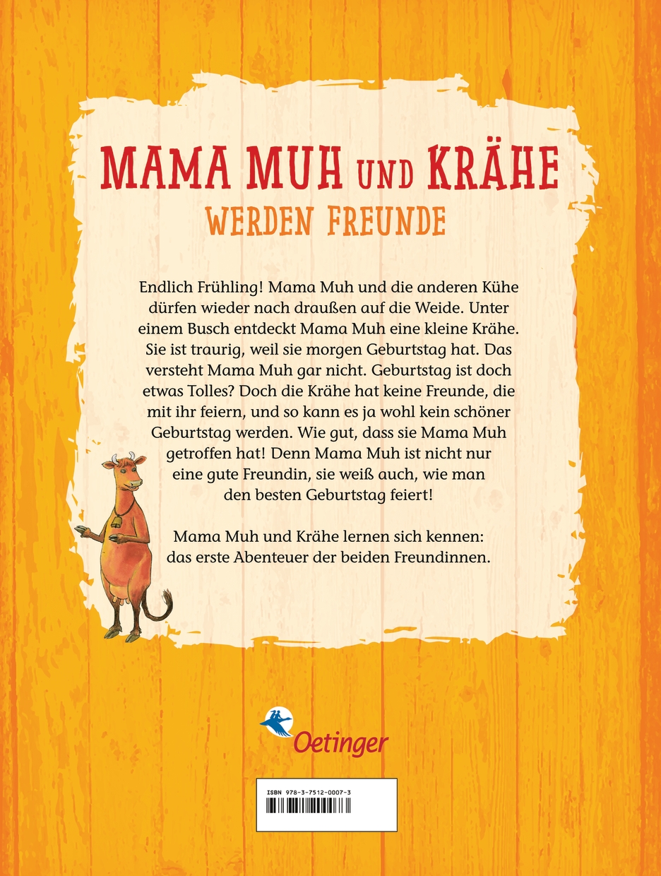Endlich Frühling – und Mama Muh darf wieder nach draußen auf die Weide. Unter einem Busch entdeckt sie eine kleine Krähe. Die Krähe ist traurig, weil sie morgen Geburtstag hat. Das versteht Mama Muh gar nicht. Geburtstag ist doch etwas Tolles? Doch Krähe hat keine Freunde, die mit ihr feiern, und so kann es ja wohl kein schöner Geburtstag werden. Wie gut, dass sie Mama Muh getroffen hat! Denn Mama Muh ist nicht nur eine gute Freundin, sie weiß auch, wie man den besten Geburtstag feiert!