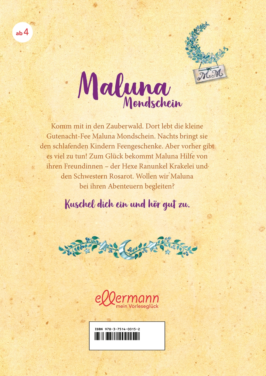 Cooler als Lillifee, spannender als Snöfrid, frecher als Erdbeerinchen! Weit weg im fernen Zauberwald lebt die kleine Gutenacht-Fee Maluna Mondschein. Sie ist eine ganz besondere Fee. Denn nur Maluna bringt den Kindern nachts echte Feengeschenke. Dazu braucht sie die Hilfe ihrer Freundinnen - z. B. der Hexe Ranunkel Krakelei und natürlich den Schwestern Rosarot. Möchtest du sie dabei begleiten? Dann kuschel dich schnell in dein allerweichstes Kissen und lass dir die Geschichte vorlesen. Viel Spaß mit Maluna Mondschein und feentraumschöne Nacht!