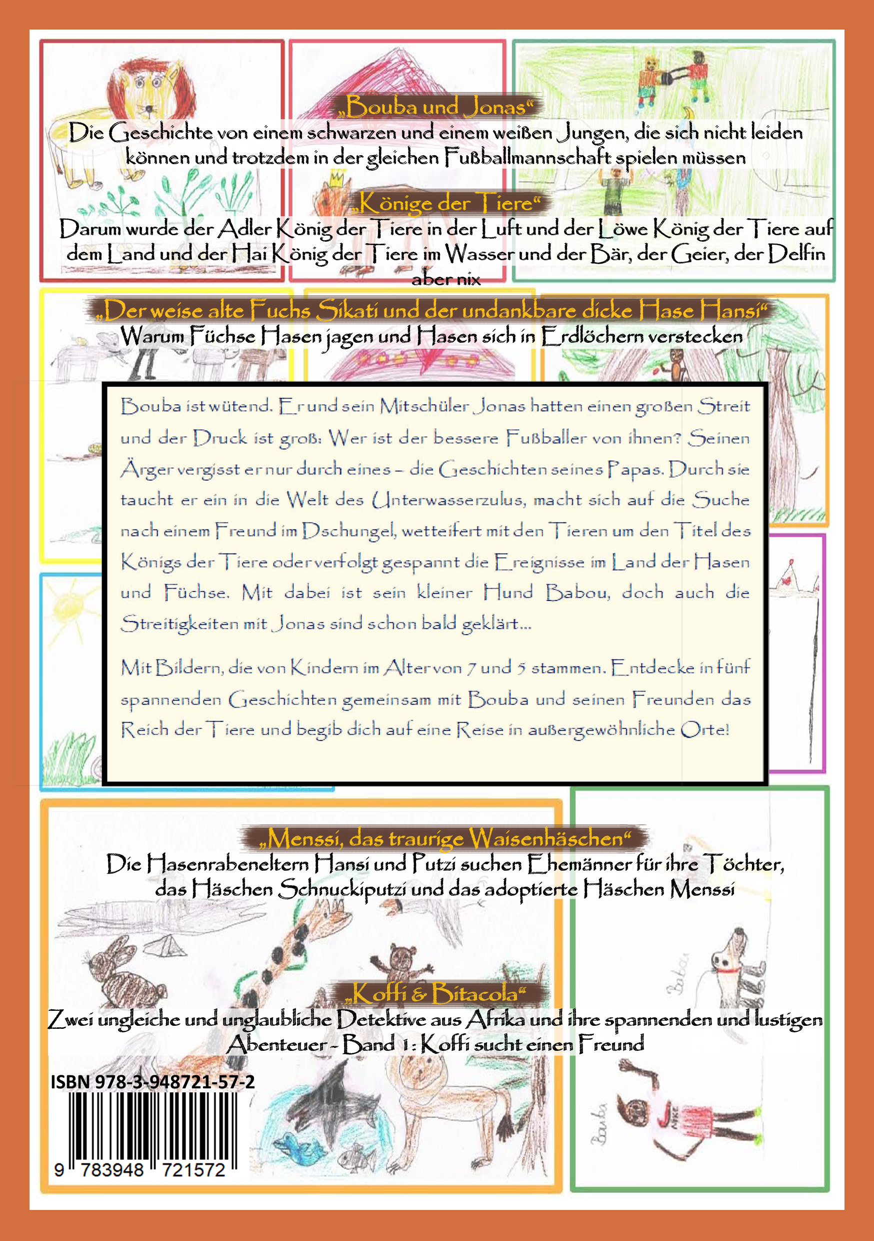 Der kleine Fußballer Bouba und seine Abenteuer. Eine Reise durch die Unterwasserwelt, in den Dschungel, das Reich der Tiere und ins Land der Hasen und Füchse.Mit Dantse Dantses Kinderbüchern Probleme bewältigen, Ängste überwinden, Mutproben bestehen und eigene Fähigkeiten entdecken!Lehrreich und spielerisch erzählt Autor Dantse Dantse die Geschichte von Bouba und Jonas und wie aus einer Feindschaft eine tiefe Freundschaft wurde.Dieses Sammelwerk soll nicht nur Kindern, sondern auch Erwachsenen helfen, Werte wie Freundschaft, Treue, Zuverlässigkeit, Hilfsbereitschaft, Versöhnung, Verzeihung, Toleranz, Zusammenhalt, Respekt, Mut, Glaube und Geduld (wieder) zu entdecken.Angereichert mit den bekanntesten Geschichten Bells, Boubas Vater, darunter: Könige der Tiere, Koffi & Bitacola, Der weise, alte Fuchs Sikati und der undankbare, dicke Hase Hansi und Menssi, das traurige Waisenhäschen.So fällt es Jung und Alt leicht, den spannenden und bewegenden Geschichten zu folgen.Erstmalig gibt es einen Sammelband, in dem reale Themen behandelt werden, die sich mit echten Menschen, der Zukunft unserer Kinder, unserer Umwelt, Kind-Sein und unterschiedlichen Kulturen auf spannende und lustige Art beschäftigen. Viele der Geschichten basieren auf Gleichnissen der Bibel, dienen lediglich der Inspiration und um Kinder und Eltern an bestimmte Werte zu erinnern, die sehr wichtig für den Erfolg eines Kindes sind, die aber in unserer schnelllebigen und vernetzten Welt immer mehr verschwinden. Durch spaßige Tiergeschichten können Kinder somit biblische Werte und Lehren durch Tierakteure besser und leichter aufnehmen.Mit Dantse Dantses Kinderbüchern Probleme bewältigen, Ängste überwinden, Mutproben bestehen und eigene Fähigkeiten entdecken!Lehrreich und spielerisch erzählt Autor Dantse Dantse die Geschichte von Bouba und Jonas und wie aus einer Feindschaft eine tiefe Freundschaft wurde.Dieses Sammelwerk soll nicht nur Kindern, sondern auch Erwachsenen helfen, Werte wie Freundschaft, Treue, Zuverlässigkeit, Hilfsbereitschaft, Versöhnung, Verzeihung, Toleranz, Zusammenhalt, Respekt, Mut, Glaube und Geduld (wieder) zu entdecken.Angereichert mit den bekanntesten Geschichten Bells, Boubas Vater, darunter: Könige der Tiere, Koffi & Bitacola, Der weise, alte Fuchs Sikati und der undankbare, dicke Hase Hansi und Menssi, das traurige Waisenhäschen.So fällt es Jung und Alt leicht, den spannenden und bewegenden Geschichten zu folgen.Erstmalig gibt es einen Sammelband, in dem reale Themen behandelt werden, die sich mit echten Menschen, der Zukunft unserer Kinder, unserer Umwelt, Kind-Sein und unterschiedlichen Kulturen auf spannende und lustige Art beschäftigen. Viele der Geschichten basieren auf Gleichnissen der Bibel, dienen lediglich der Inspiration und um Kinder und Eltern an bestimmte Werte zu erinnern, die sehr wichtig für den Erfolg eines Kindes sind, die aber in unserer schnelllebigen und vernetzten Welt immer mehr verschwinden. Durch spaßige Tiergeschichten können Kinder somit biblische Werte und Lehren durch Tierakteure besser und leichter aufnehmen.Bouba ist Fußballer. Er denkt, er ist der beste Spieler seiner Mannschaft, denn ohne ihn würden sie keine Tore schießen. Der Meinung ist Jonas aber nicht. Denn ohne ihn würde Bouba gar keine Pässe bekommen, um diese Tore zu schießen. Bald hat er ein wichtiges Spiel und kann vor Aufregung nicht schlafen. Nach ewigem Hin und Her kann er seinen Vater dazu bringen, ihm eine Geschichte zu erzählen. Sein Vater erzählt aber keine Geschichte ohne einen Hintergedanken: Bouba soll verstehen, dass man etwas tun muss, um der beste zu sein und nicht nur davon ausgehen. Sein Papa Bell erzählt die Geschichte von Gott und dem Wettbewerb um die Wahl des Königs der Tiere. Dort konkurrieren die Tiere der Luft, der Erde und des Wassers untereinander, um von Gott als König aller Tiere ernannt zu werden. Es gewinnen der Adler, der Löwe und der Hai, weil sie fleißig waren und sich bewiesen hatten. Bouba versteht und k