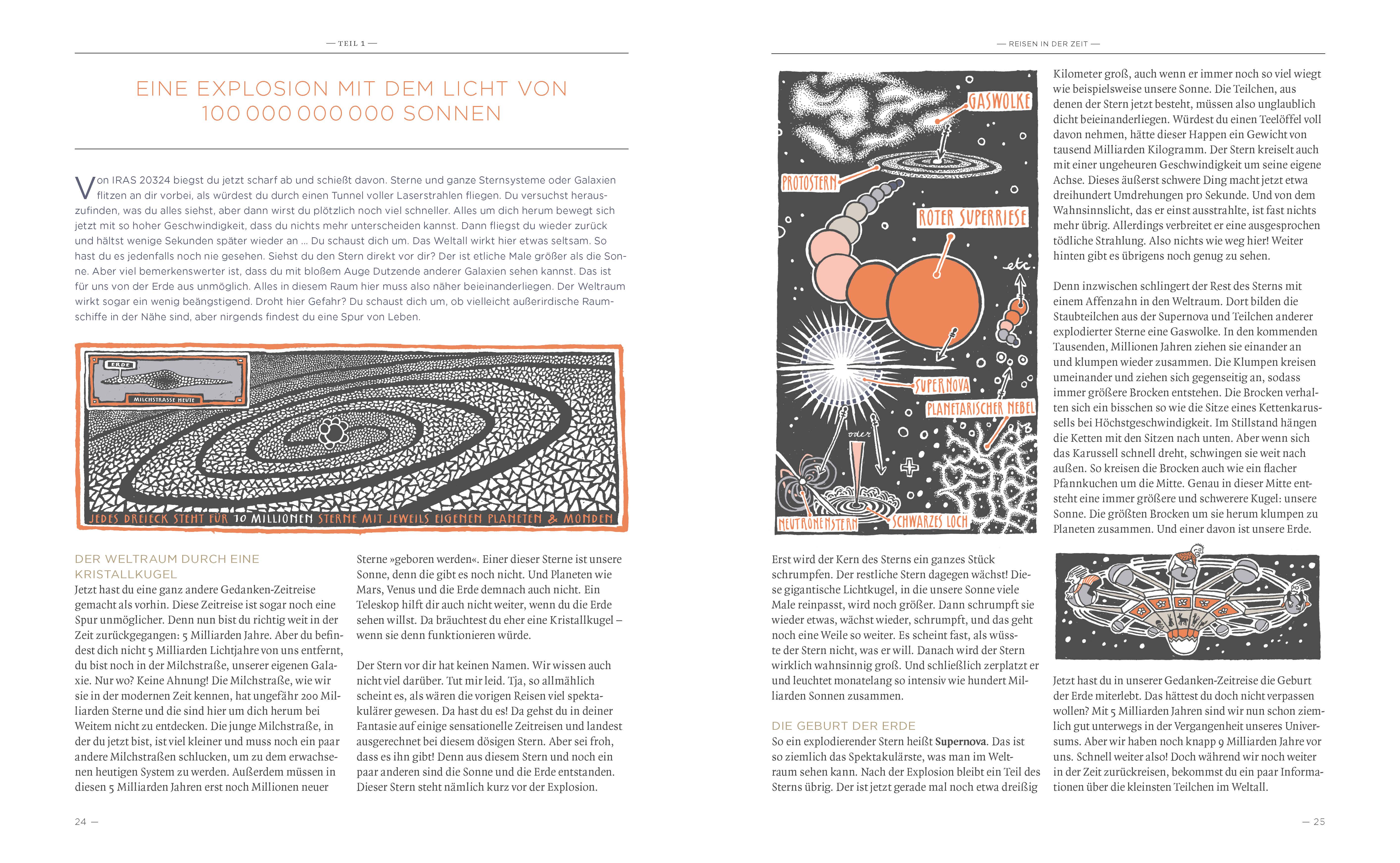 Wie ist unser Weltall entstanden? Kann aus nichts etwas werden? Diesen und vielen anderen Fragen geht Erfolgsautor Jan Paul Schutten auf packende und humorvolle Art nach. Er lädt zu verblüffenden Gedankenexperimenten ein, entführt in die Welt der Supernovas, Schwarzen Löcher, Roten Riesen und Weißen Zwerge, erklärt Einsteins Theorien und stellt philosophische und religiöse Deutungen vor. Floor Rieder hat das Buch augenzwinkernd illustriert.
