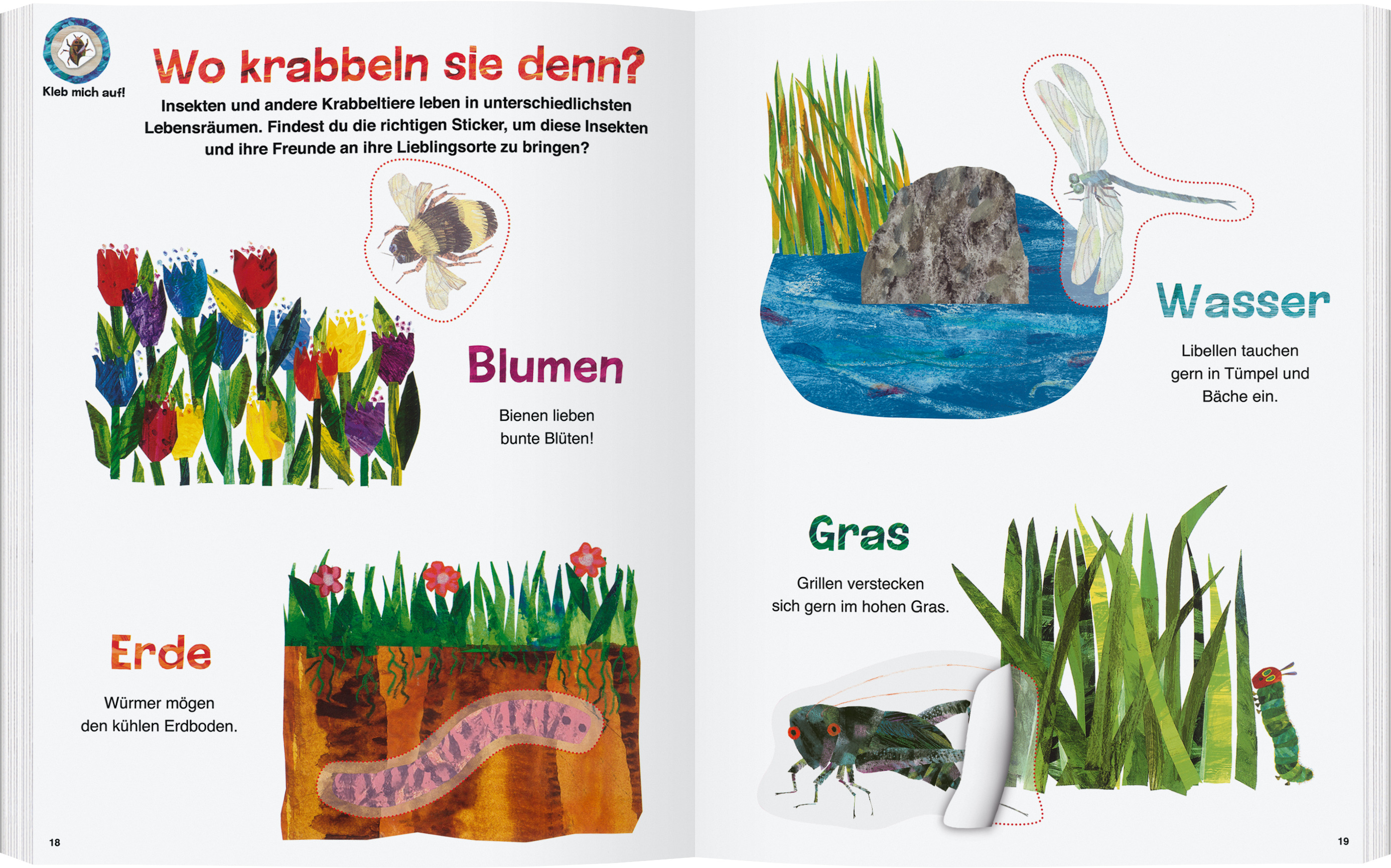 Mit der kleinen Raupe Nimmersatt die Welt der Insekten und anderer Krabbeltiere entdecken: Ein erstes Sach- und Beschäftigungsheft mit 100 Stickern.