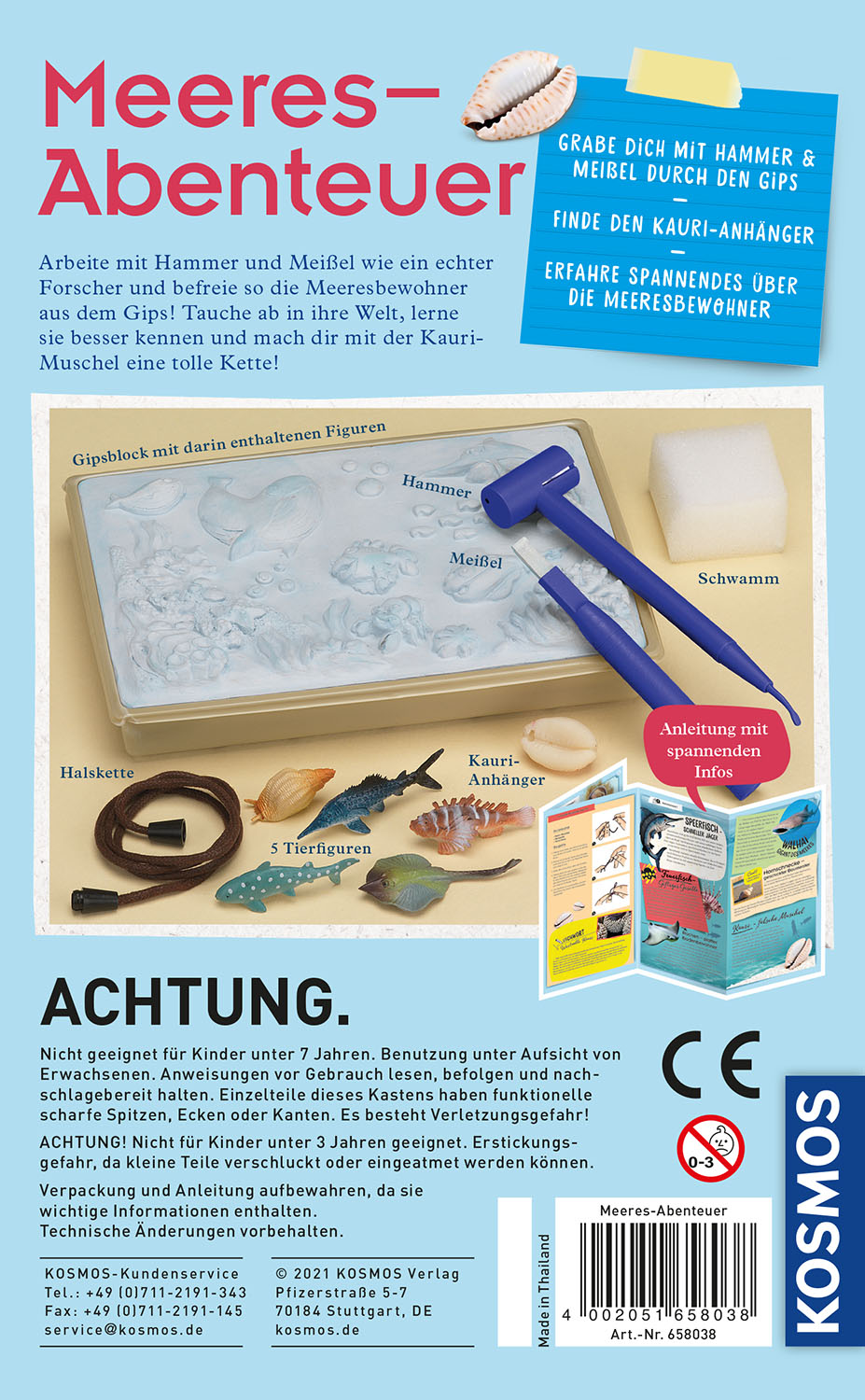 | Schlagworte | Archäologie • Ausgraben • Ausgrabungsset • Basteln Kinder • beschaeftigung • Delfin • Experimente für Kinder ab 8 • Fische • Geburtstagsgeschenk • Geologie • Hai • kette,muscheln • kosmos forscherset • Meer • Meerestiere • MINT • Mitbringsel • Ozean • Werkzeug |