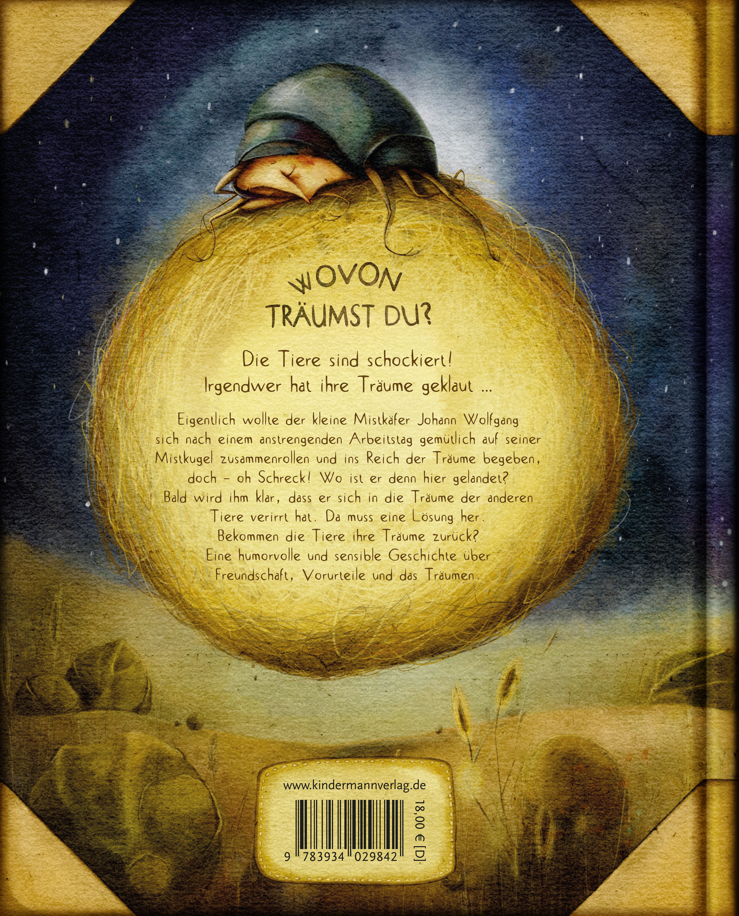 Die Tiere sind schockiert! Irgendwer hat ihnen ihre Träume geklaut ...Eigentlich wollte der kleine Mistkäfer sich nach einem anstrengenden Arbeitstag gemütlich auf seiner Mistkugel zusammenrollen und ins Reich der Träume begeben, doch - oh Schreck! Wo ist er denn hier gelandet? Schnell merkt er, dass er sich in die Träume der anderen Tiere verirrt hat, was für ziemliches Chaos sorgt. Da stolpert Frau Giraffe schon einmal über ihr Seidentuch und dem schnorchelnden Schaf entgeht eine lang ersehnte Begegnung. Eine Lösung muss her! Bekommen die Tiere ihre Träume zurück? Eine lustige und sensible Geschichte über Freundschaft, Vorurteile und das Träumen.Magische Illustrationen lassen die Traumwelt lebendig werden - ein bezauberndes Buch über Freundschaft, Vorurteile und das Träumen.Zum Schluss wartet das Buch außerdem mit interessanten Sachinfos über den Mistkäfer auf.