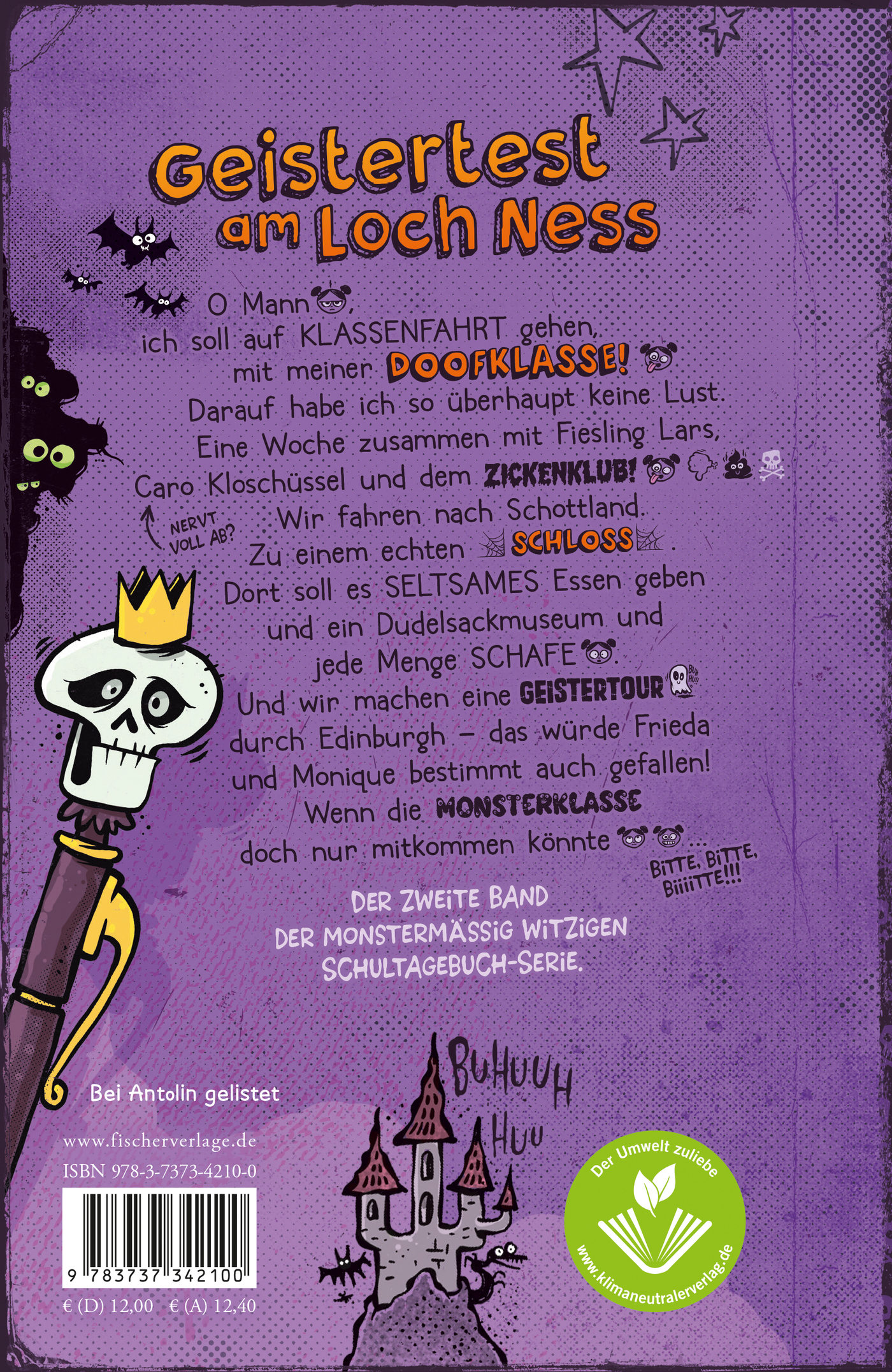 | Schlagworte | Antolin • Comic Roman • Craigs Tagebuch • Fuchsjagd • Geister • Gregs Tagebuch • Grusel • Jugendherberge • Klassenfahrt • Loch Ness • Lotta-Leben • magisch • Monster • Schloss • School of the Dead • Schottland • Schule • Schultagebuch • Spuken • Tagebuch • Tagebuch Roman • Zauberstift |