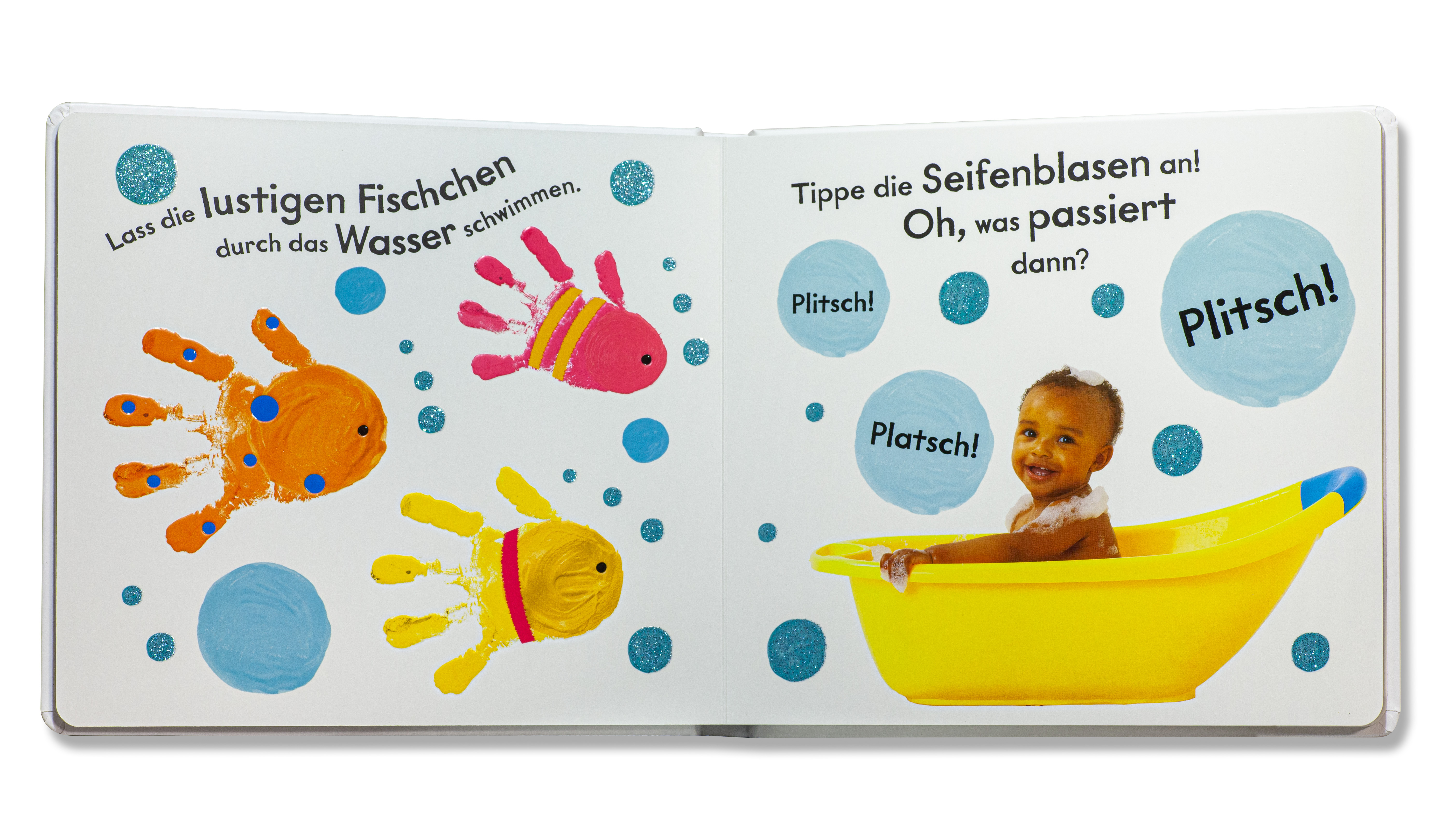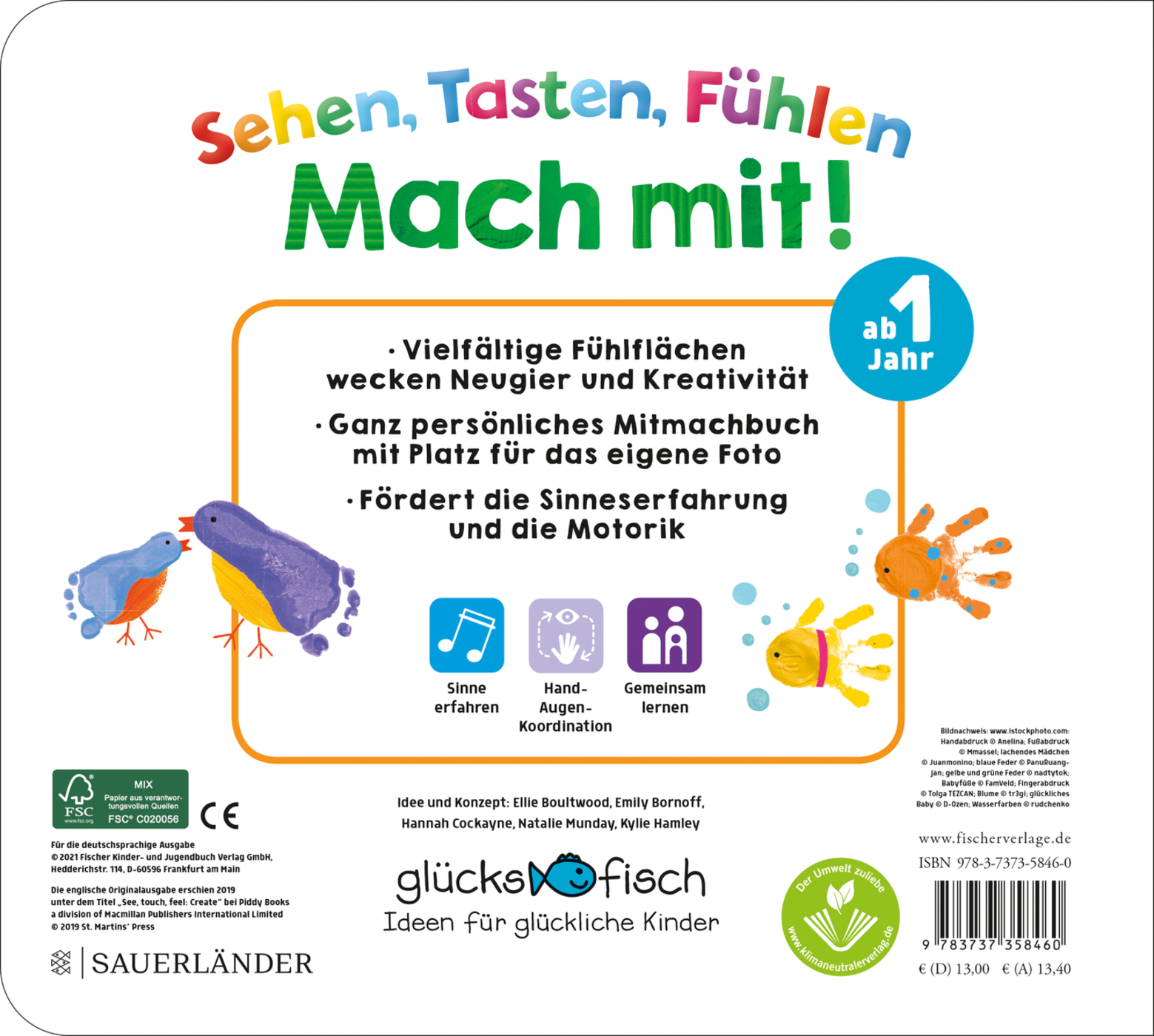 Spannende Fühlflächen und Fingerspuren wecken Neugier und Kreativität und fördern die Motorik. Farbenfrohe und lustige Fotos laden zum Mitmachen und gemeinsamen Spielen ein.