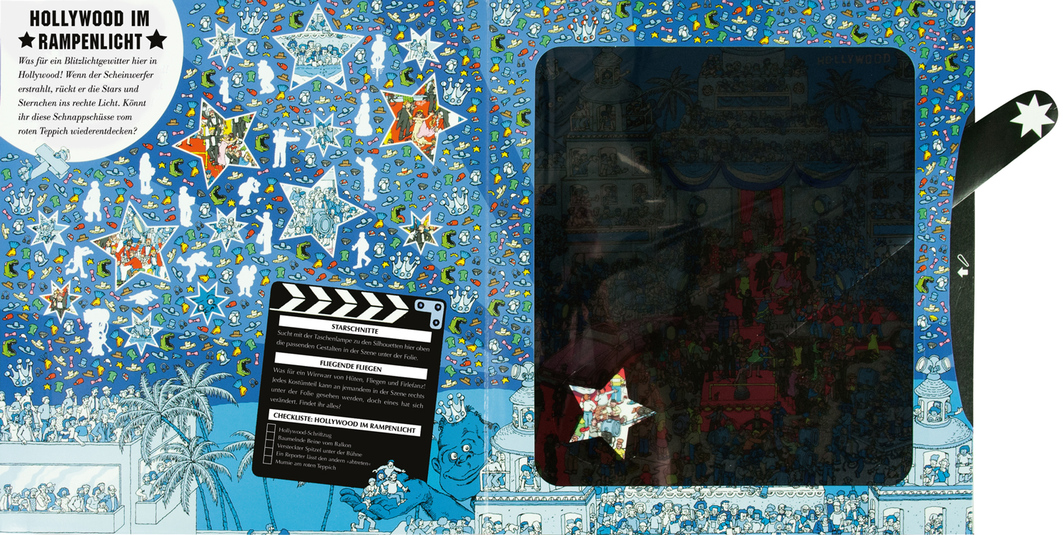 »Wo ist Walter?« Das sind die Kultbücher unter den Wimmelbüchern und sie haben inzwischen Fans auf der ganzen Welt. Die Suche nach Walter und seinen Weggefährten Wilma, Weißbart und Terwal funktioniert im Buch auch im Dunkeln. Die magische Taschenlampe, die dem Buch beiliegt muss nur unter die Folien auf jeder Seite des Buches geschoben werden. So gelingt es kinderleicht, die Suchaufgaben zu lösen. Ob im Weltall, in Hollywood, in einer dunklen Piratenhöhle oder in der Tiefsee. Der magische Scheinwerfer bringt Licht ins Dunkel. Ein unendlicher Suchspaß mit vielen Aufgaben und Herausforderungen für alle Walter-Fans und die, die es noch werden wollen.
