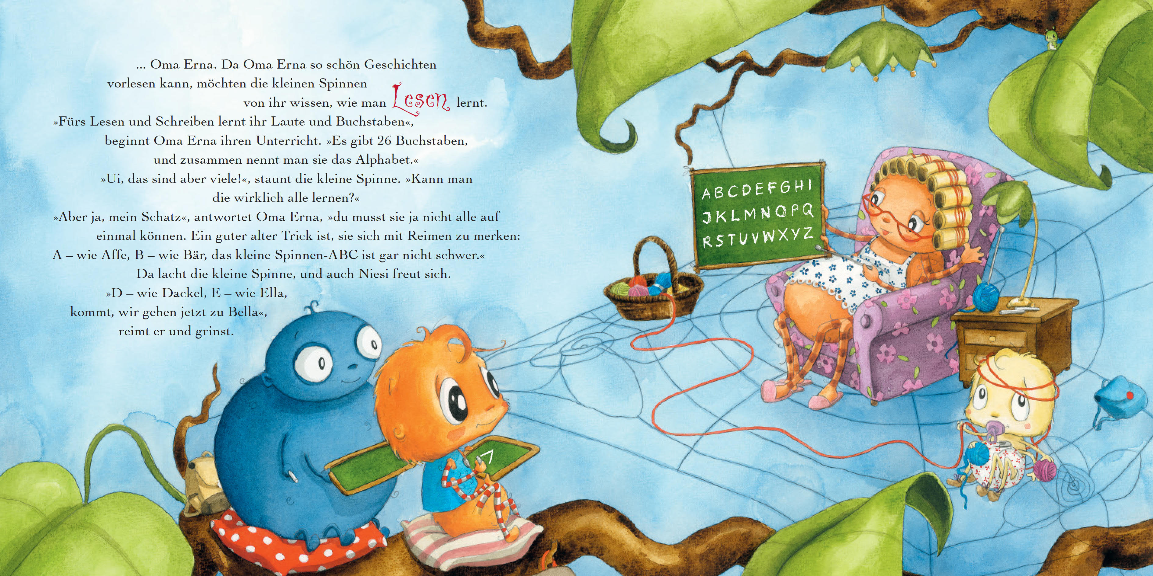 Die kleine Spinne Widerlich kommt bald in die erste Klasse und möchte wissen, was man in der Schule eigentlich so macht. Da werden Onkel Langbein, Oma Erna und andere Verwandte kurzerhand zu Lehrern, und ein lustiger Schultag beginnt ...