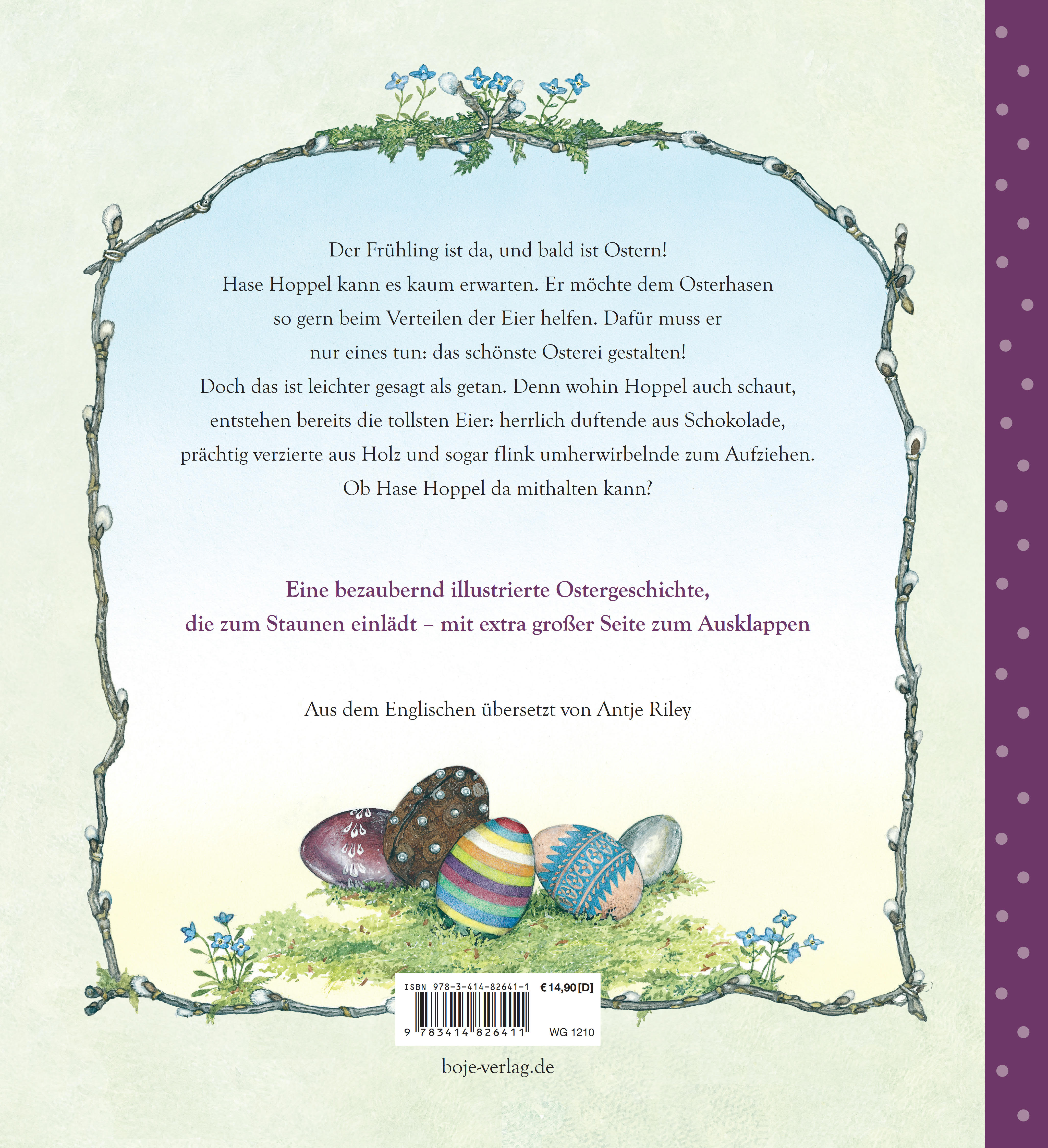 Das besondere Buch zu Ostern - für alle Fans von "Die kleine Häschenschule"Der Frühling ist da, und bald ist Ostern! Hase Hoppel kann es kaum erwarten. Er möchte dem Osterhasen so gern beim Verteilen der Eier helfen. Dafür muss er nur eines tun: das schönste Osterei gestalten! Doch das ist leichter gesagt als getan. Denn wohin Hoppel auch schaut, entstehen bereits die tollsten Eier: herrlich duftende aus Schokolade, prächtig verzierte aus Holz und sogar flink umherwirbelnde zum Aufziehen. Ob Hase Hoppel da mithalten kann?Eine bezaubernd illustrierte Ostergeschichte, die zum Staunen einlädt - mit extra großer Seite zum Ausklappen