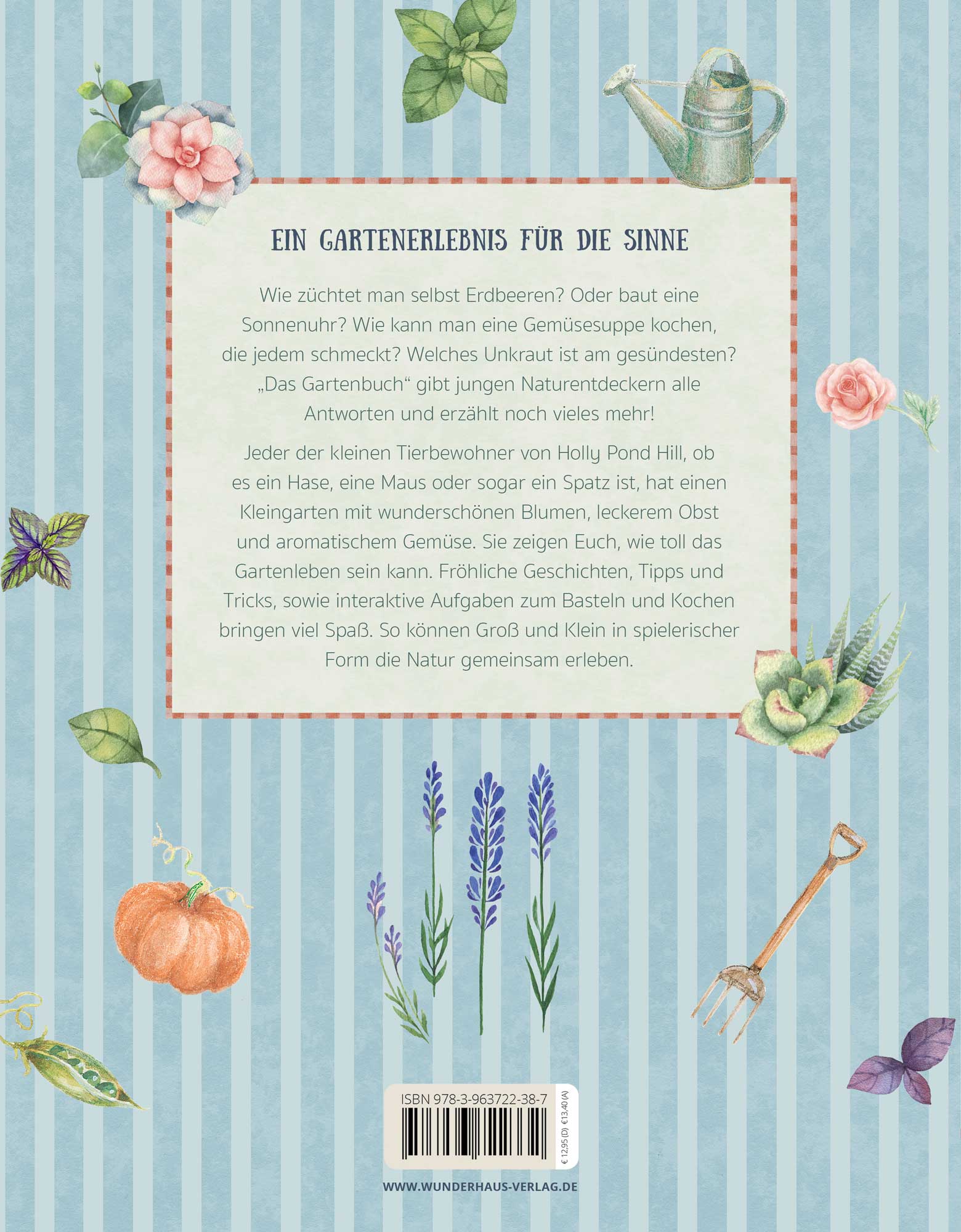 EIN GARTENERLEBNIS FÜR DIE SINNE- Über 80 Seiten mit Geschichten, Rezepten, Liedern, Gartentipps und Tricks, Ideen zum Basteln und Spielen im Garten- Wenig Aufwand, viel Spaß- Wissen spielerisch vermittelt- Wunderschön nostalgisch illustriert- Alle Schritt-für-Schritt-Anleitungen sind einfach zu verfolgenWie züchtet man selbst Erdbeeren? Oder baut eine Sonnenuhr? Wie kann man eine Gemüsesuppe kochen,die jedem schmeckt? Welches Unkraut ist am gesündesten? "Das Gartenbuch" gibt jungen Naturentdeckern alle Antworten und erzählt noch vieles mehr!Jeder der kleinen Tierbewohner von Holly Pond Hill, ob es ein Hase, eine Maus oder sogar ein Spatz ist, hat einen Kleingarten mit wunderschönen Blumen, leckerem Obst und aromatischem Gemüse. Sie zeigen Euch, wie toll das Gartenleben sein kann. Fröhliche Geschichten, Tipps und Tricks, sowie interaktive Aufgaben zum Basteln und Kochen bringen viel Spaß. So können Groß und Klein in spielerischer Form die Natur gemeinsam erleben.Ein schönes Mitmachbuch für Vorschulkinder und Schulanfänger mit vielen Beschäftigungen, Anregungen für Kinder und charmanten kleinen Geschichten zum Lesen und Vorlesen.