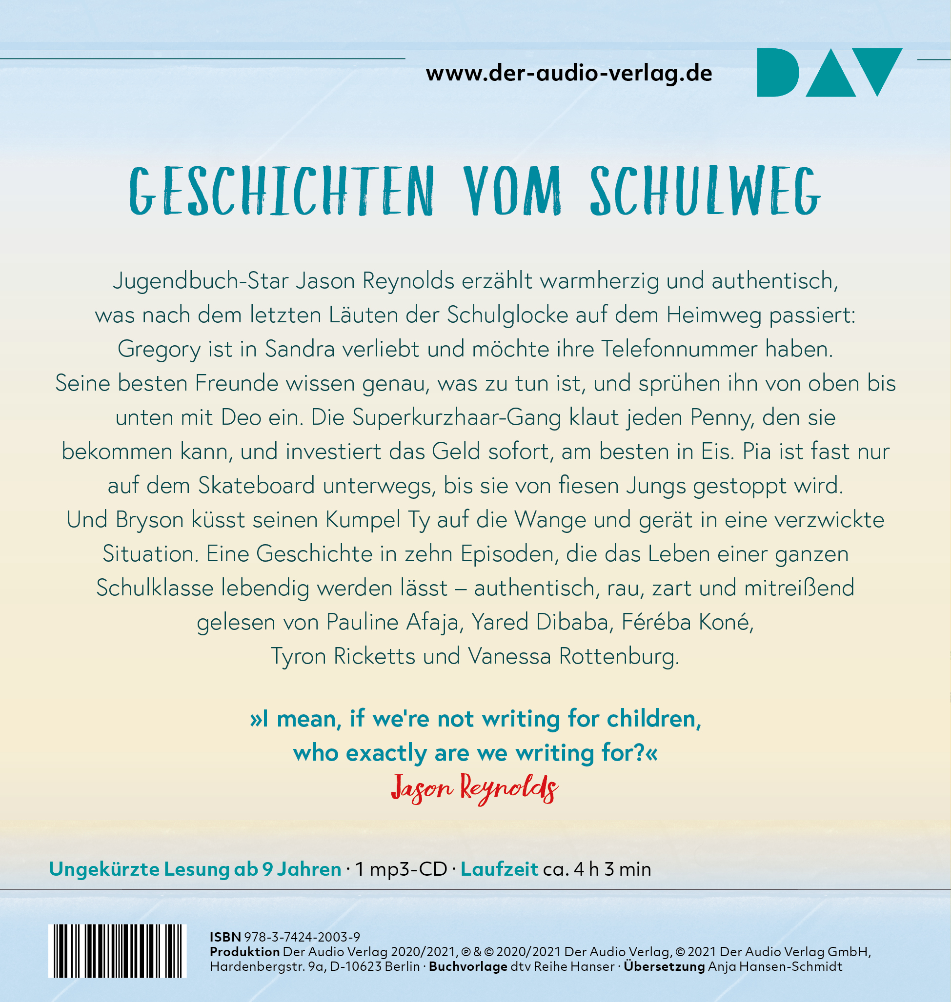 »Reynolds' Gabe, die Stimmen und die Menschlichkeit der urbanen Teenager einzufangen, ist in vollem Umfang zu sehen. Die gesamte Sammlung strotzt nur so vor Humor und dem heldenhaften Kampf um das Erwachsenwerden.« Kirkus Review »Das ist Geschichtenerzählen vom Feinsten, ein wahres Meisterwerk von einem der klügsten Botschafter der Kinderliteratur.« Booklist »In Reynolds' charakteristischem Stil klingt in jeder Geschichte emotionale Authentizität und Einfühlungsvermögen mit.« Publishers Weekly