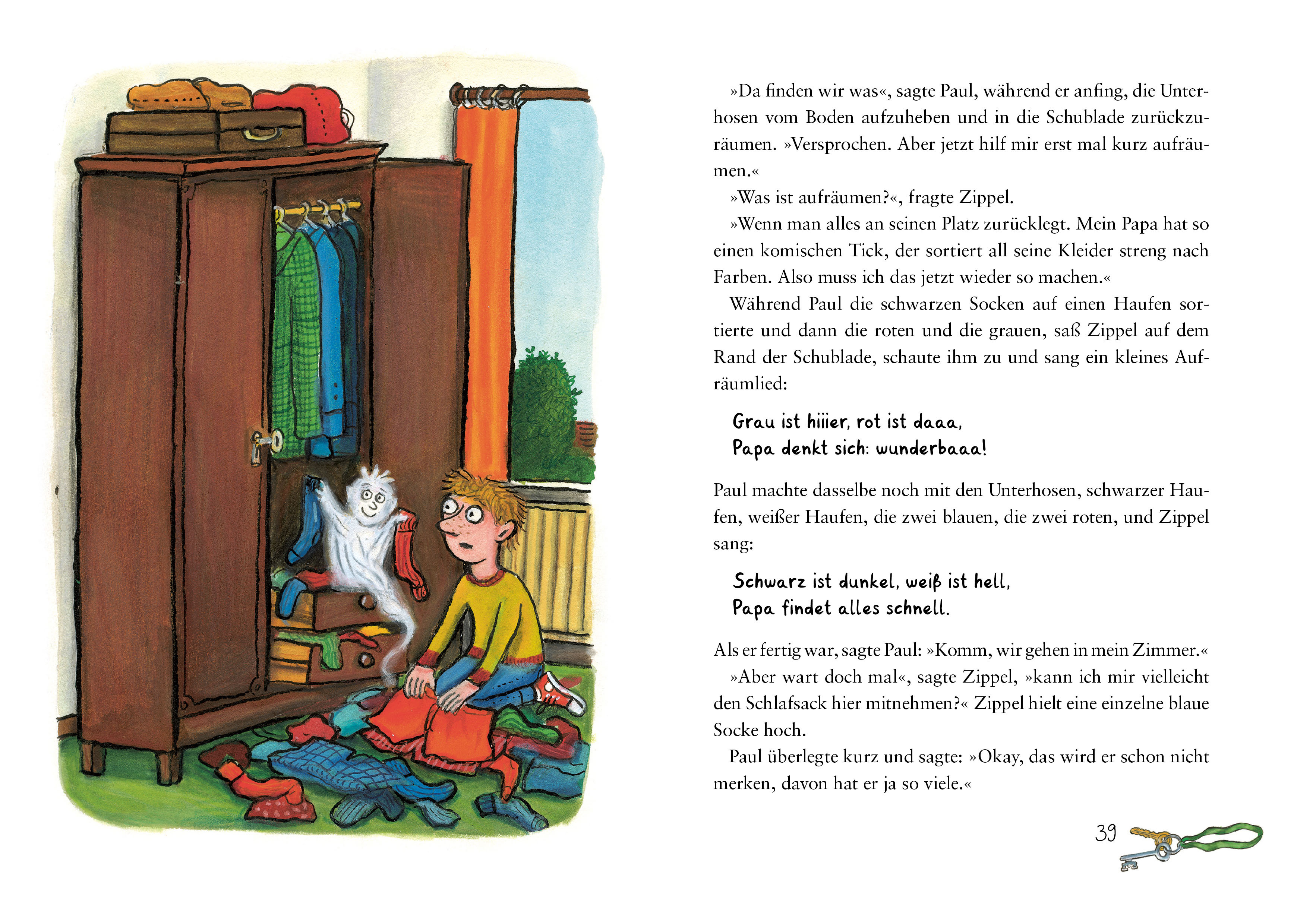 Zippel ist ein kleines Schlossgespenst. Aber wer hat eigentlich behauptet, dass Schlossgespenster in Burgschlössern leben? Nein, Zippel lebt bei Paul und seinen Eltern - im Türschloss ihrer Altbauwohnung. Am Tag nach den Sommerferien hat Paul ihn dort entdeckt, und damit geht die lustigste Zeit seines Lebens los. Denn Zippel ist noch ein sehr junges Schlossgespenst und hat ständig Quatsch im Kopf. Mit Zippel wird es so aufregend, dass Paul sich ein Leben ohne ihn nicht mehr vorstellen kann und er seinen neuen kleinen Freund fest ins Herz schließt. Doch dann soll das Türschloss ausgetauscht werden - und Zippels Zuhause ist plötzlich in Gefahr.