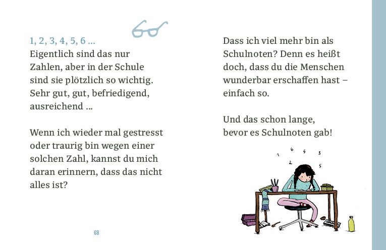 Kinder haben eine eigene Sprache - auch wenn sie beten. Andrea Langenbacher nimmt das ernst und formuliert hier Gebetstexte so, wie Kindern heute der Schnabel gewachsen ist. Es geht um Freunde, Eltern, Geschwister, um Sorge und Seligkeit, um alles, was den Alltag von Kindern berührt. Geeignet zum Vor- und Selberlesen mit hinreißenden Illustrationen von Marie Hübner.