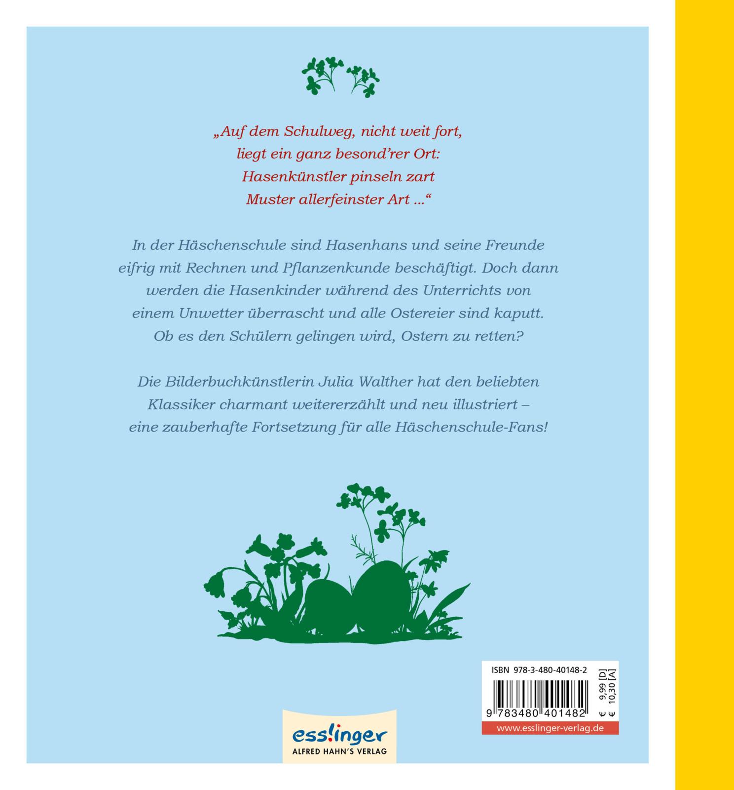 Nachdem die Bilderbuch-Künstlerin Julia Walther die Hasengeschichte "Winter in der Häschenschule" von Albert Sixtus mit ihren zauberhaften Bildern zum Leben erweckt hat, erscheint jetzt eine Fortsetzung, mit eigenen Versen der Illustratorin. Mit feinem Pinselstrich und viel Nostalgie geraten die Häschen diesmal in ein richtiges Abenteuer: Während des Unterrichts werden sie von einem Unwetter überrascht und alle Ostereier sind kaputt. Ob es Hasenhans und seinen Freunden gelingen wird, das Osterfest zu retten? Fest steht, dass die Schule erst einmal warten muss ...