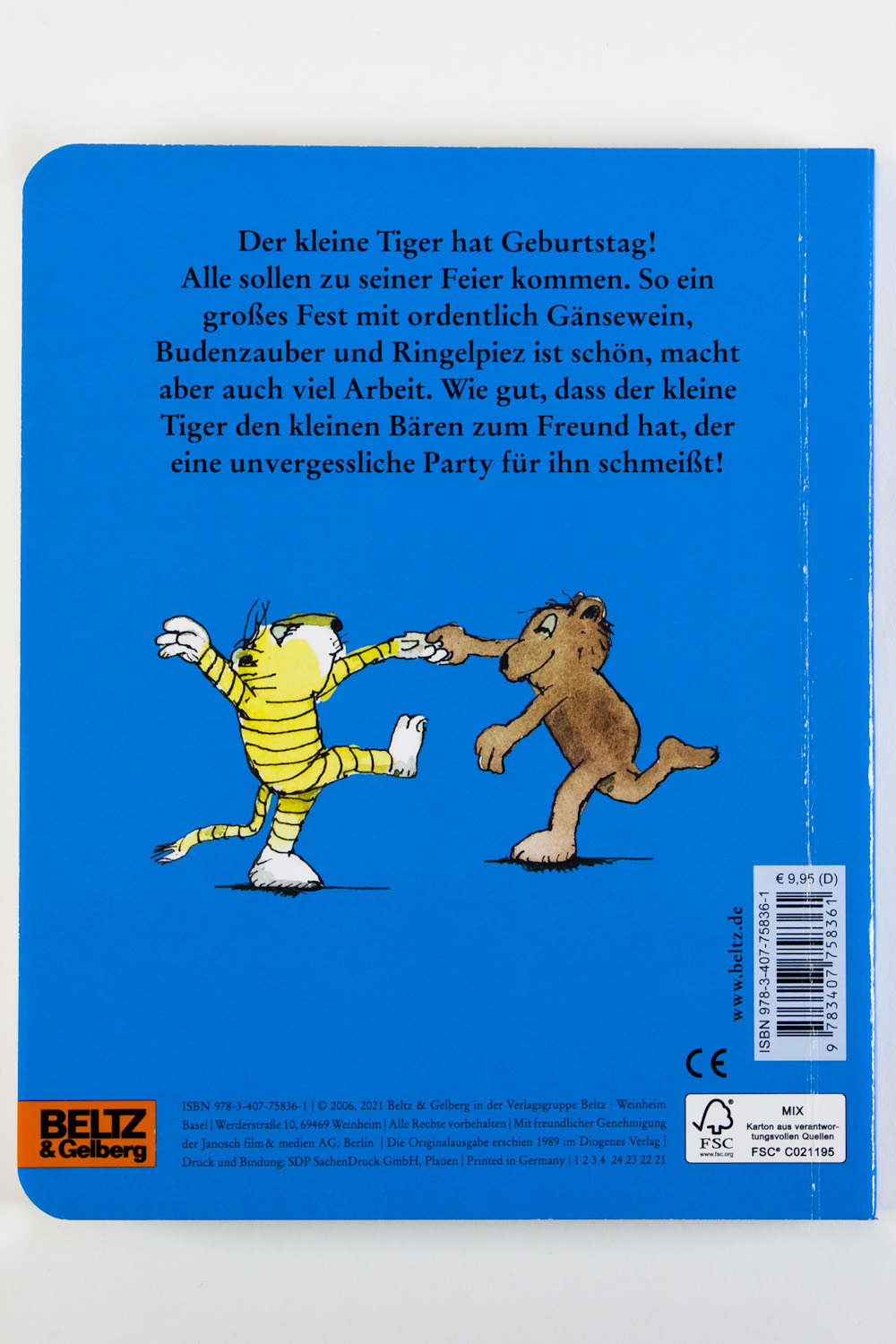 Der kleine Tiger hat Geburtstag. Alle sollen zu seiner Feier kommen: Günter Kastenfrosch, Tante Gans und Kaspar Mütze, der große dicke Waldbär, der Reiseesel Mallorca und viele andere mehr. So ein großes Fest braucht viel Vorbereitung! Und weil jeder mal Geburtstag hat, ist es gut zu wissen, wie man eine Riesenparty schmeißt, mit Gänsewein, einem fidelen Budenzauber und Ringelpiez. Ein Klassiker der Kinderliteratur, jetzt auch als Pappe für Kinder ab 3 Jahren und in neuer Gestaltung.