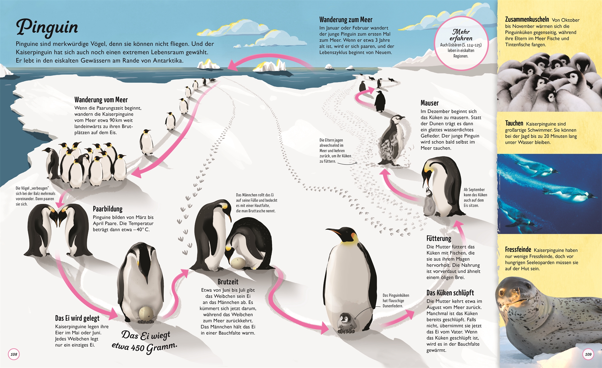 Lebewesen wachsen, bekommen Nachwuchs und sterben schlussendlich, bevor der Kreislauf von neuem beginnt. Die Natur ist ständig in Bewegung und bildet dabei ein ewiges Gleichgewicht. Dieses Naturbuch zeigt kleinen Leser*innen mit prächtigen Bildern die eindrucksvollen Zyklen der Natur. Von der Entstehung des Universums bis zum Schlüpfen eines Pinguinkükens Schritt für Schritt entdecken sie die einzelnen Naturkreisläufe und ihre Wechselbeziehungen.