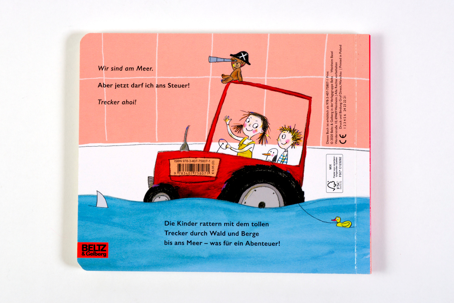 »Komm, wir spielen Treckerfahren!« Die Kinder rattern mit dem tollen Trecker durch den Wald, durch die Berge, in den Tunnel und bis ans Meer. Beinahe geht es ihnen an den Kragen, krach-klong-klawumm! Aber keine Angst, sie machen nur Quatsch - wie im Kinderspiel. Eine so simple wie schöne Geschichte, die großen Spaß macht mitzufahren.