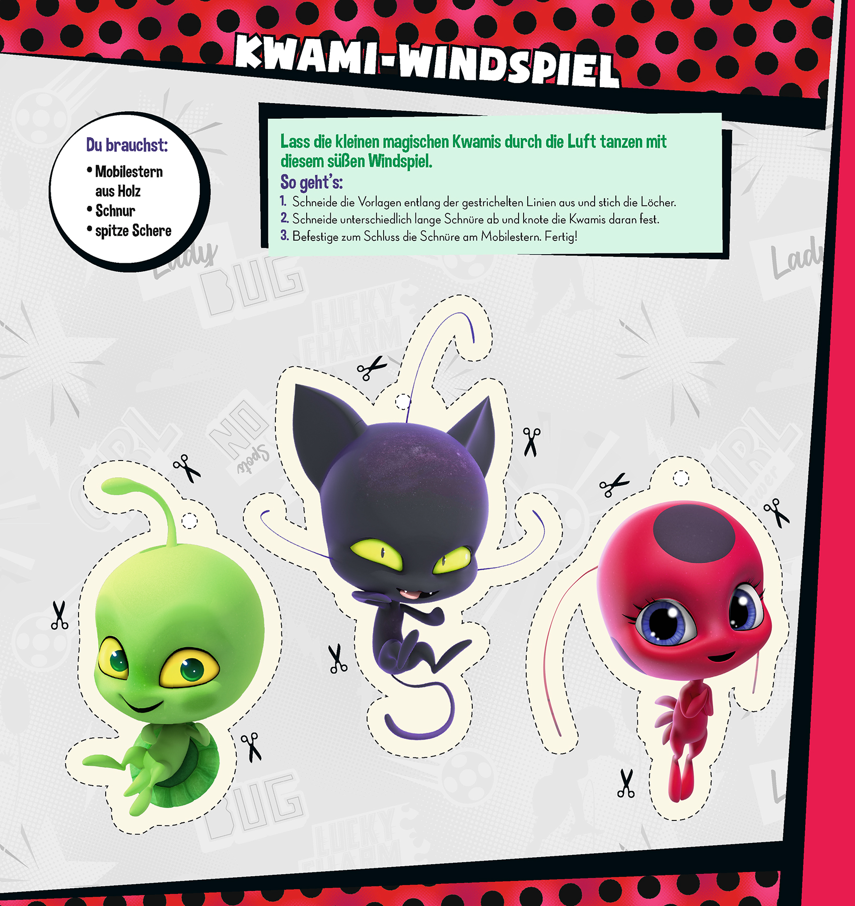 Ob Ladybugs Jo-Jo, Cat Noirs Maske oder die geheimnisvolle Schatulle von Meister Fu - in diesem großen Bastelblock findest du viele kreative Bastelideen rund um deine Helden. Und das Beste: Alle Bastelvorlagen sind auf extra dickem Papier und können direkt entnommen und verbastelt werden. Also: Auf die Schere, fertig los!