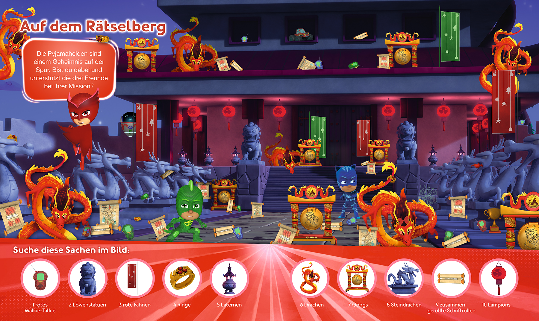 Es wird Nacht in der Stadt, und eine kleine Gruppe mutiger Helden macht sich auf, gerissenen Schurken das Handwerk zu legen. Begleite Eulette, Catboy und Gecko bei ihren spannenden Einsätzen und verliere nicht den Überblick! Denn zwischen diesen Mondrauschbällen und unzähligen Klebeklatschern gibt es jede Menge Dinge zu entdecken.