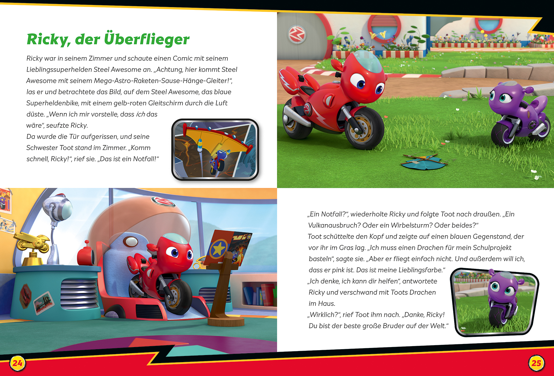 Ricky Zoom, der kleine rote Flitzer aus Schnellfurt, düst mit seinen Bike Buddys von einem Abenteuer ins nächste. Ob die vier Freunde das Geheimnis um den legendären Schnellfurt-Flitzer lüften, einen zoomtastischen Gleitschirm basteln oder bei einem riskanten Einsatz ihren Lieblingssuperhelden Steel Awesome retten - Ricky und seinen Bike Buddys wird es nie langweilig. Gemeinsam meistern sie jede noch so kni ige Aufgabe, denn eines ist sicher: Die vier sind ein tolles Team. Begleite deine Lieblings itzer bei neuen rasanten Abenteuern!