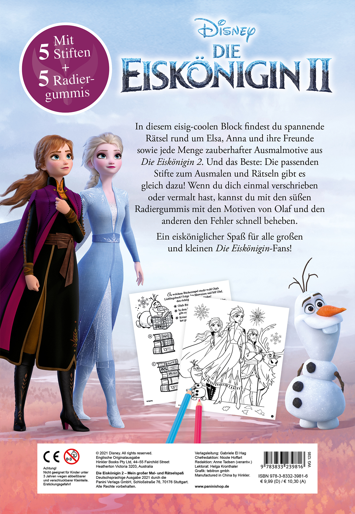 | Schlagworte | Activity • Anmalen • Anna • Arendelle • Ausmalbild • Ausmalbilder • Ausmalen • Beschäftigung • Block mit Stiften • Buch • Bücher • Bücher für Kinder • Disney • Eiskönigin • Eiskönigin 2 • eLSA • F2021 • F21 • FROZEN • Frozen 2 • Frühjahr2021 • Frühjahr21 • Kinderbuch • Kinderbücher • Kristoff • Langeweile • Malblock • Malblock mit Stiften • Malbuch • Malen • OLAF • Panini • Panini Books • PaniniBooks • Paninibooks Kinder • Panini Books Kinder • Panini Bücher • PB • PBK • Rätselblock mit Stiften |