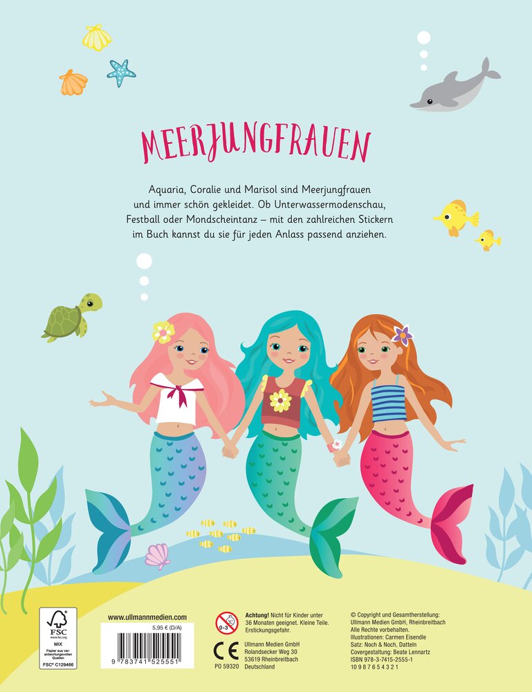 Aquaria, Coralie und Marisol sind Meerjungfrauen und immer schön gekleidet. Ob Unterwassermodenschau, Schatzsuche oder Mondscheintanz - mit den zahlreichen Stickern im Buch kannst du sie für jeden Anlass passend anziehen.