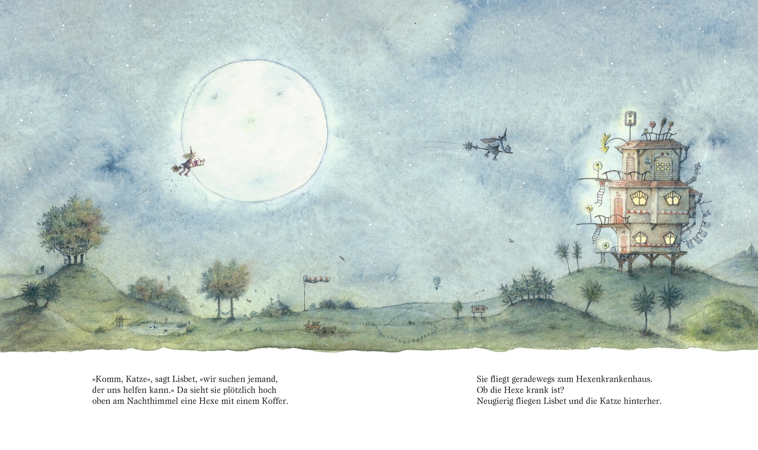 Eines Tages findet Lisbet einen Koffer vor ihrem Hexenhaus. Sie möchte zu gerne wissen, was drin ist, aber so oft sie ihren Zauberspruch auch aufsagt: Der Koffer bleibt zu. Und weder die Doktorhexe noch die Reisehexe können ihr helfen, denn der Koffer ist nur für große Hexen. Das mag Lisbet nicht auf sich sitzen lassen. Und weil sie schlau ist, schafft sie es mit einem Trick, den Koffer zu öffnen. Im Inneren findet sie einen geheimnisvollen Brief. Mit einem echten Brief zum Aufklappen im Buch.