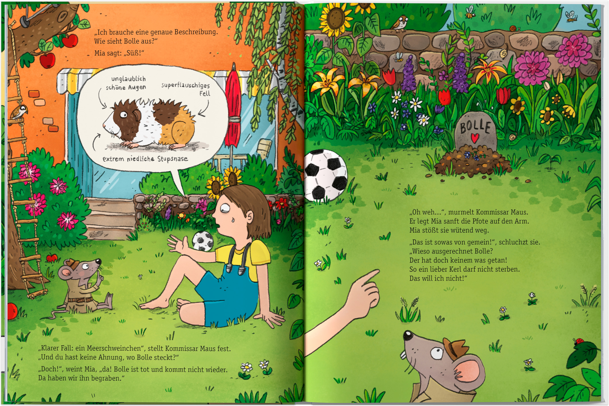 Dieses Mal hat Kommissar Maus eine Aufgabe zu erfüllen, bei der besonderes Einfühlungsvermögen gefragt ist: Mia ist traurig, weil ihr Meerschweinchen gestorben ist. Auch die beiden anderen Meerschweinchen Wuschel und Flecki vermissen Bolle sehr. Für Kommissar Maus ist es Ehrensache, dass er als Freund und Helfer auch hier mit Rat und Tat zur Seite steht: Er hört den dreien zu, teilt ihre Gefühle und Erinnerungen an Bolle und spricht mit ihnen über die Natur von Leben und Tod. Auf diese Weise hilft er den Freunden dabei, mit ihren Gefühlen und dem Verlust umzugehen.