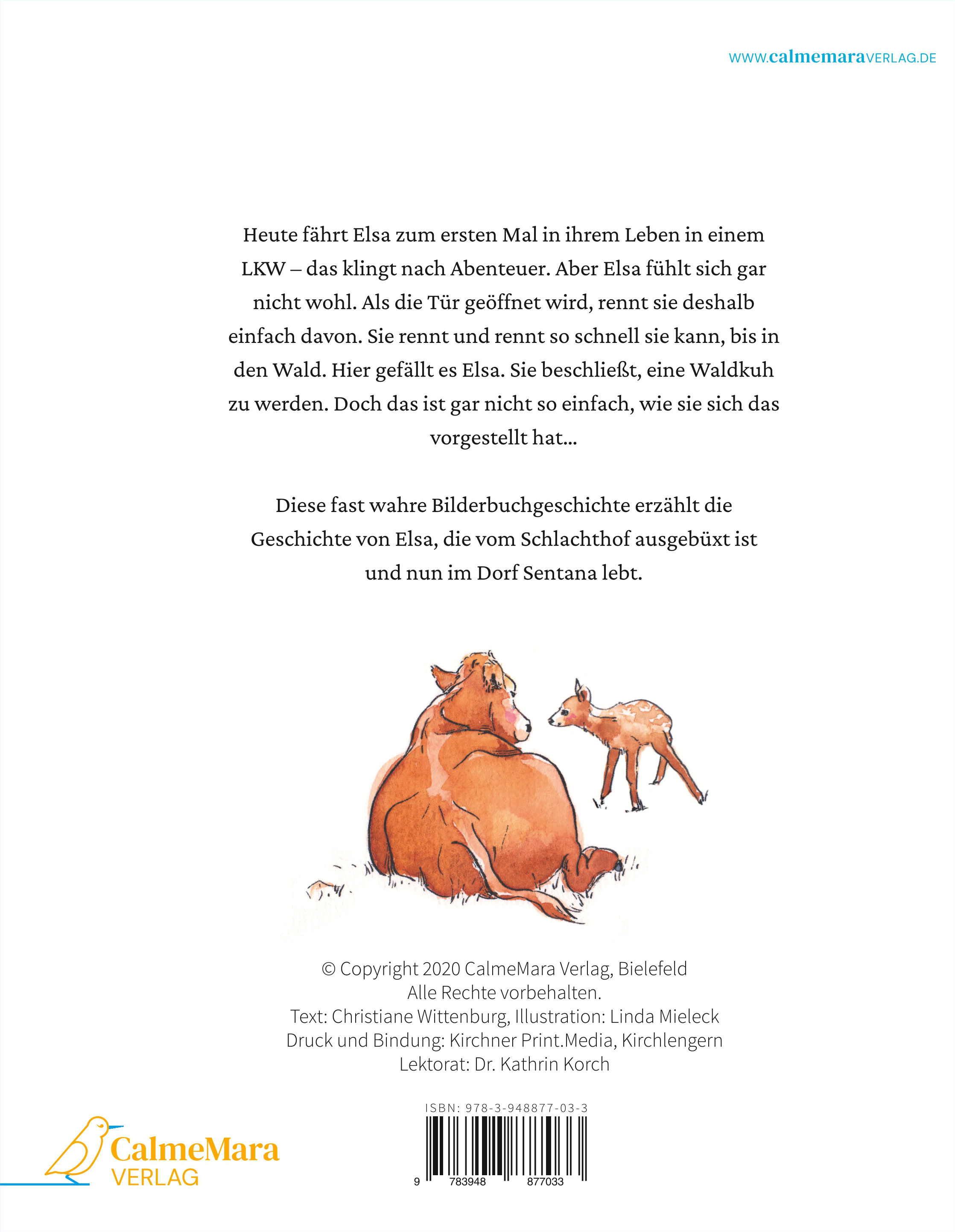 Linda Mieleck lebt mit ihrem Partner und ihrer Katze Mrs. Johnny in Bielefeld. Sie zeichnet, seit sie einen Stift halten kann. »Elsa büxt aus« war ihr erstes Kinderbuch. Als Grafik- und Kommunikationsdesignerin unterstützt sie ehrenamtlich den Begegnungs- und Gnadenhof Dorf Sentana, der uns zur Verlagsgründung inspiriert hat. Elsa kennt sie daher schon lang.