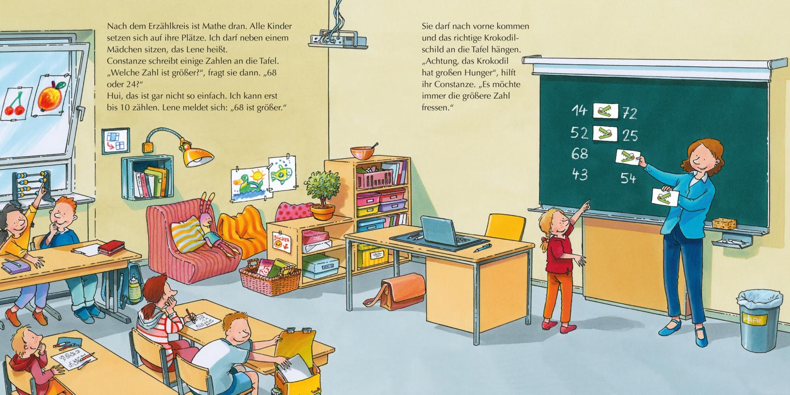 Spannende Einblicke in den Schulalltag! In dieser Geschichte erfahren Kinder alles über die Arbeit einer Lehrerin und bekommen gleichzeitig einen ersten Eindruck davon, wie ihr eigener Schulalltag aussehen wird.
