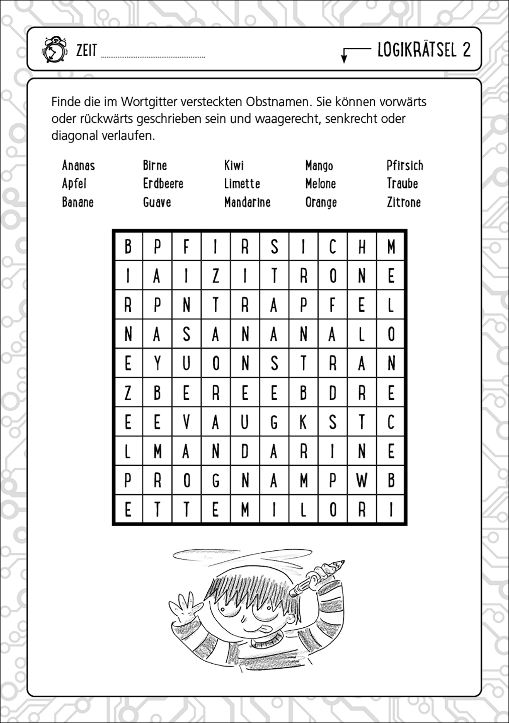 Mit diesem spannenden Rätselbuch in moderner Scribble-Optik können Kinder zwischen 8 und 10 Jahren ihr logisches Denken trainieren und fördern. Auf jeder Seite wartet ein kniffliger Logiktest, der ihr Hirn auf die Probe stellt. In den Sudokus, Labyrinthen, Logicals, Suchbildern und Rechenaufgaben rätseln sie gegen die Zeit - und können sich so auch mit ihren Freunden messen.