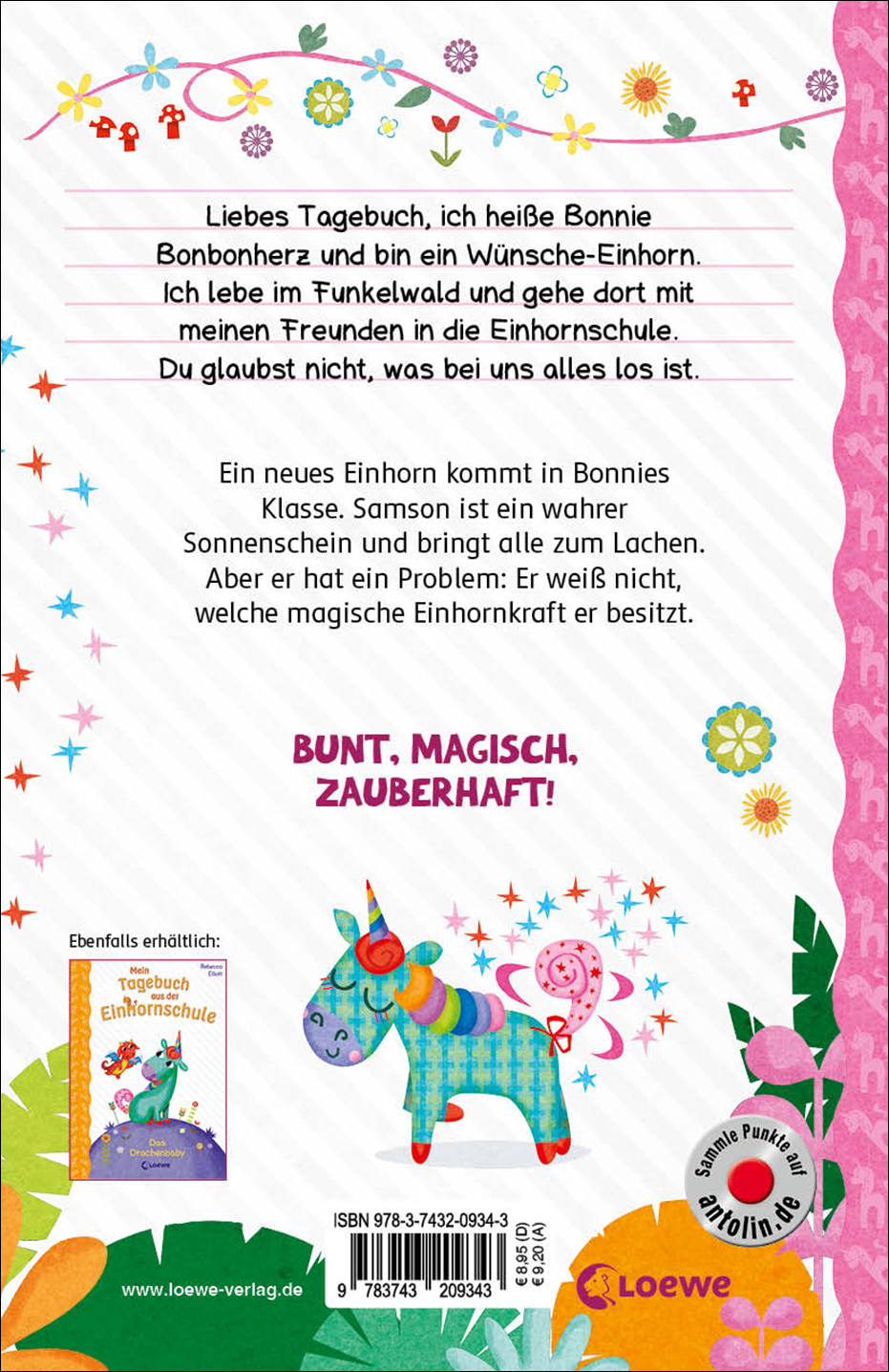 Liebes Tagebuch, ich heiße Bonnie Bonbonherz und bin ein Wünsche-Einhorn. Ich lebe im Funkelwald und gehe dort mit meinen Freunden in die Einhornschule. Du glaubst nicht, was bei uns alles los ist.