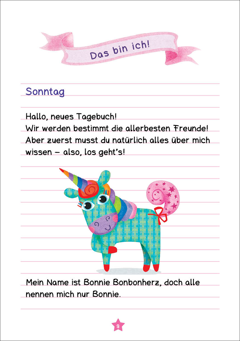 In den Einhorn-Büchern Mein Tagebuch aus der Einhornschule für Kinder ab 7 Jahren dreht sich alles um Bonnie Bonbonherz, ein Einhorn, das Wünsche erfüllen kann. Bonnie vertraut auf die Magie der Freundschaft und hört stets auf ihr Herz. Ihre besten Freunde sind die anderen Schüler aus ihrer Klasse. Mit ihnen zerplatzen alle Probleme wie Seifenblasen.